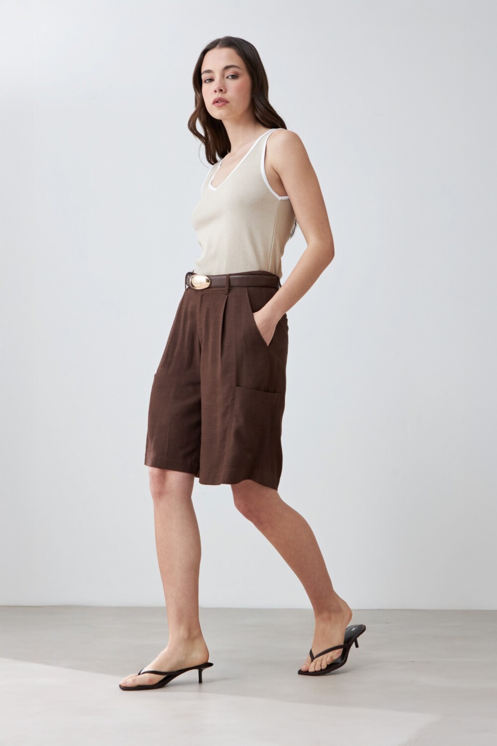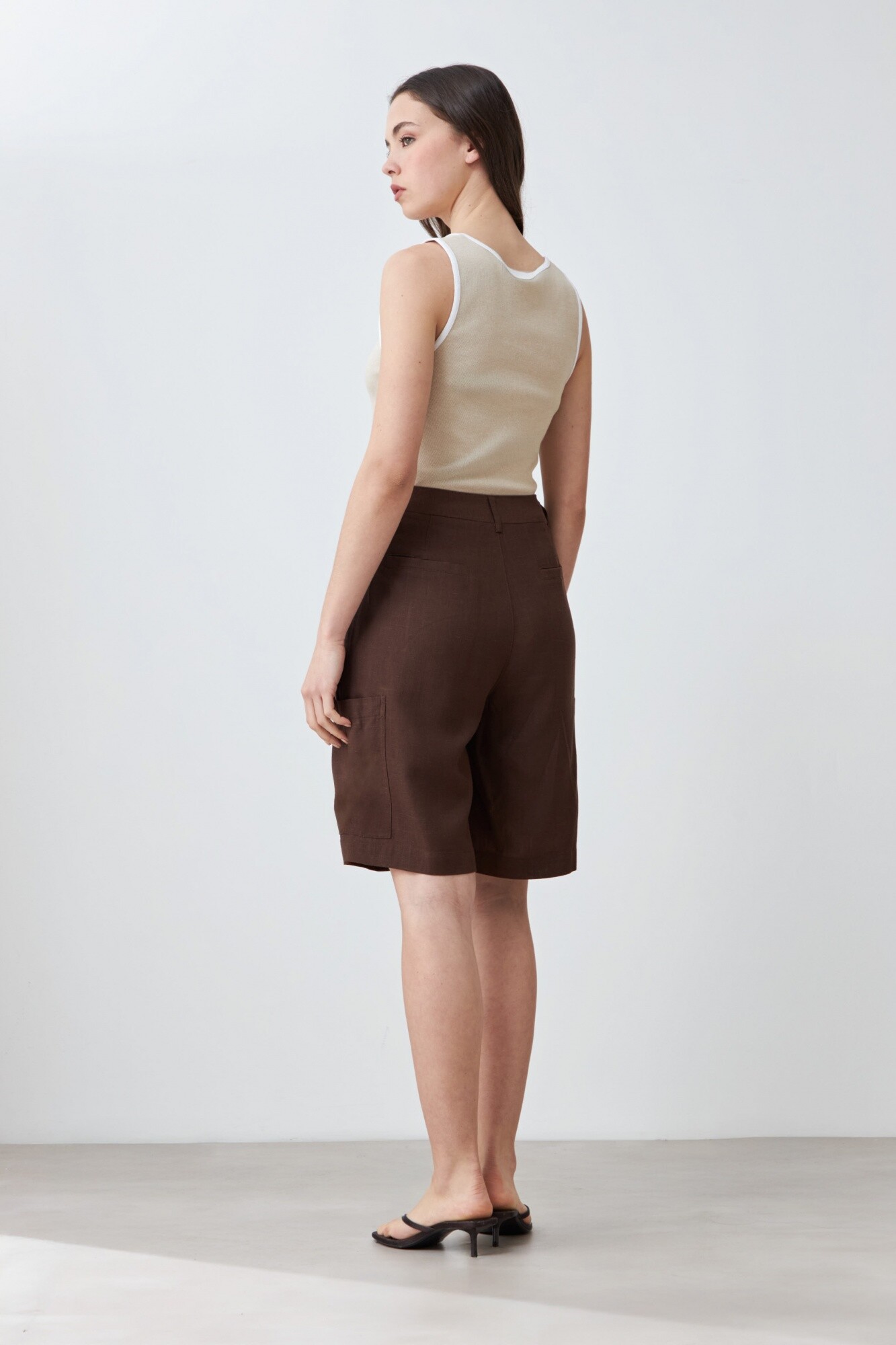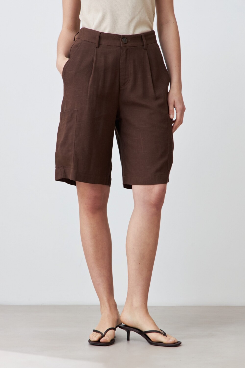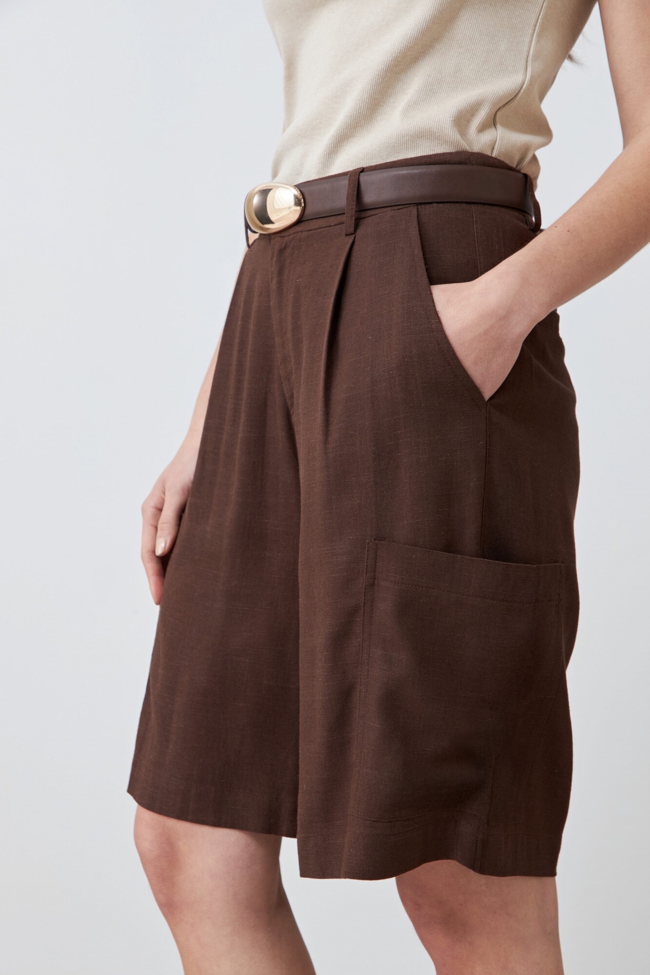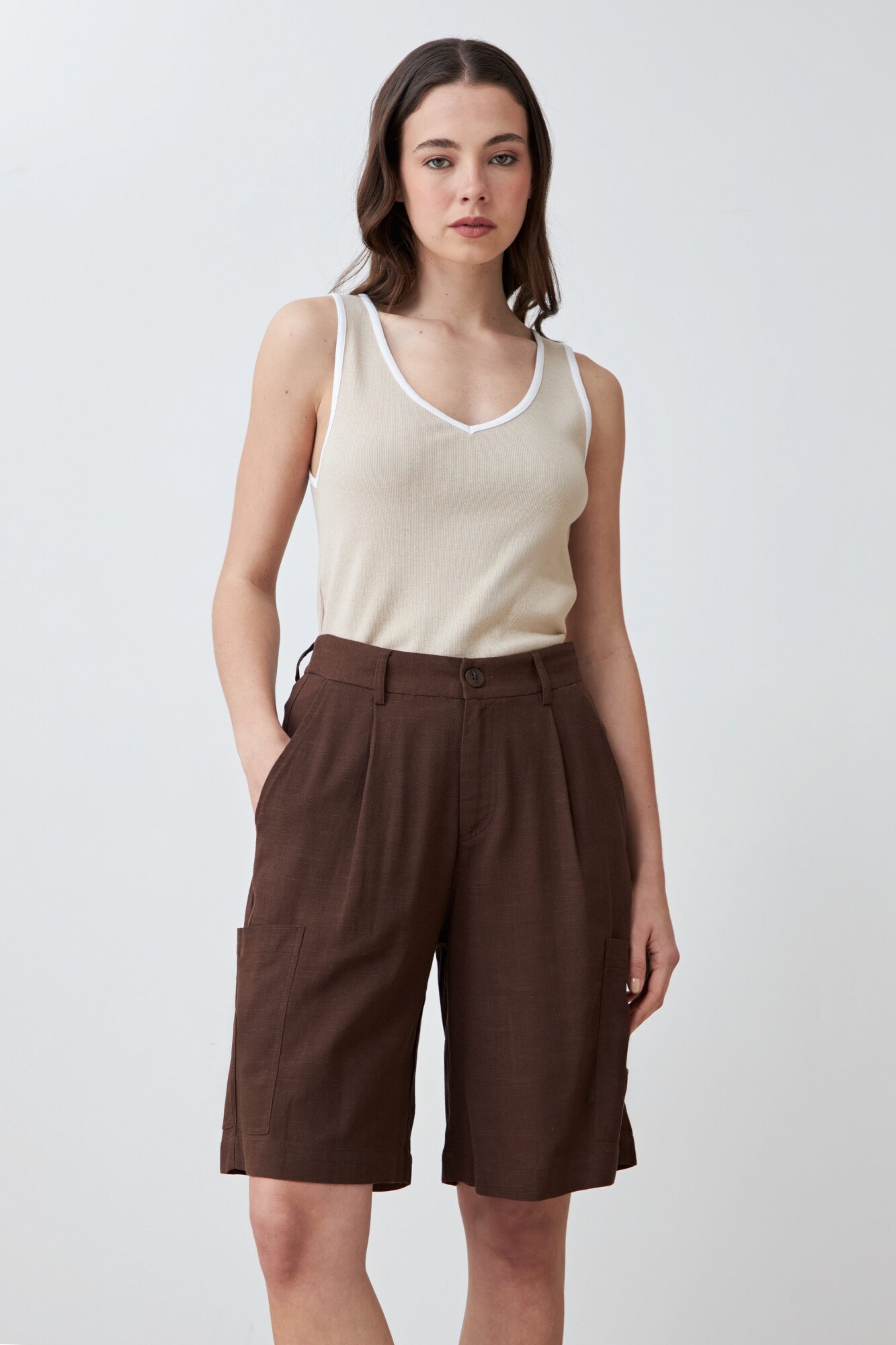 Bermuda cargo de lino - chocolate