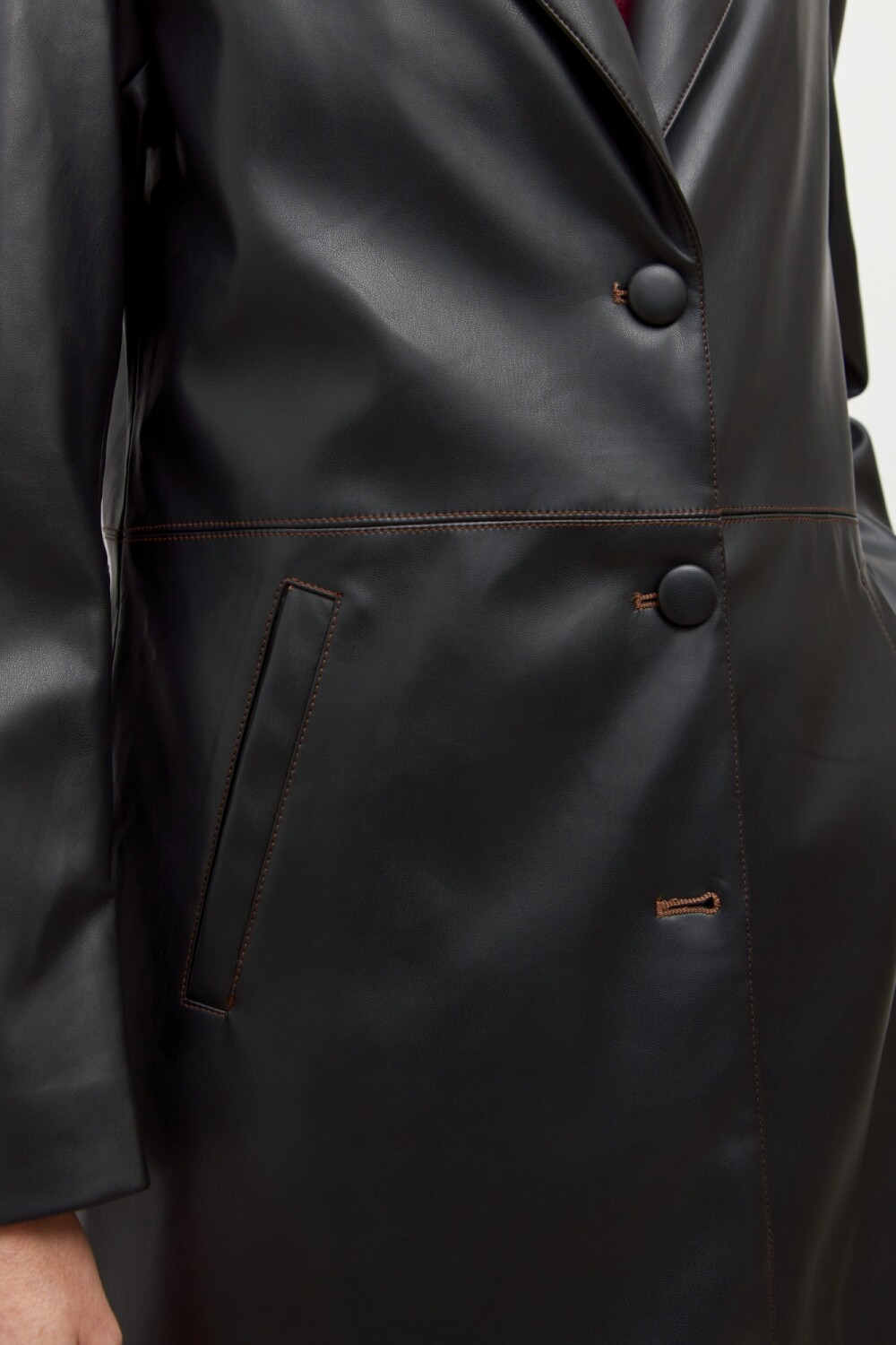 Blazer largo confeccionado en eco cuero.