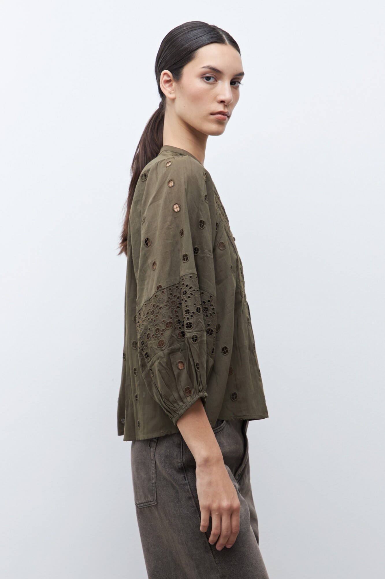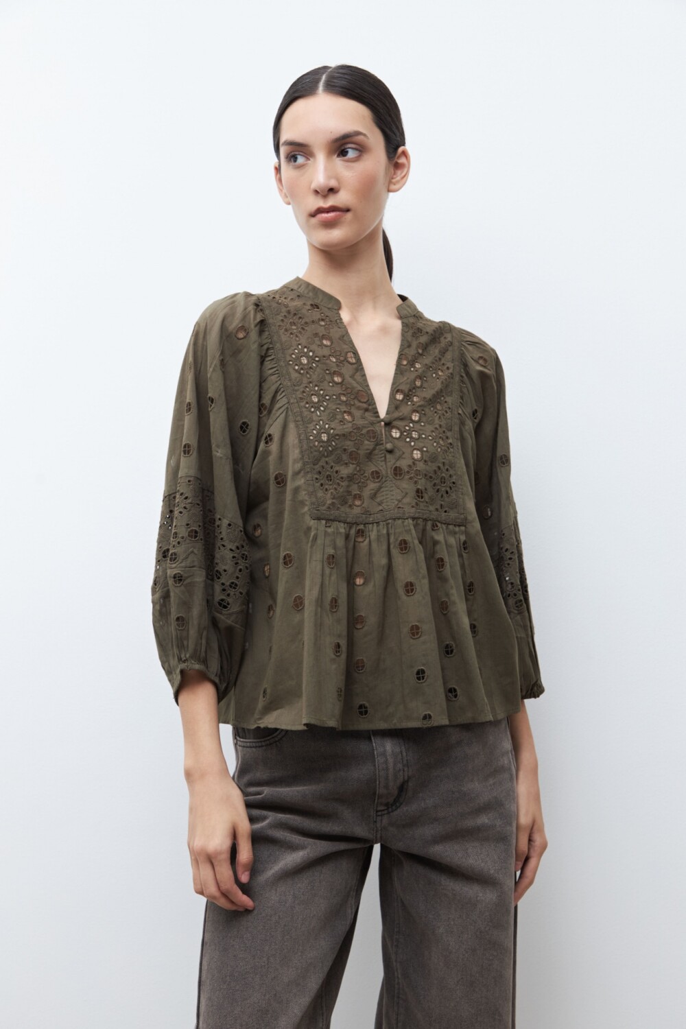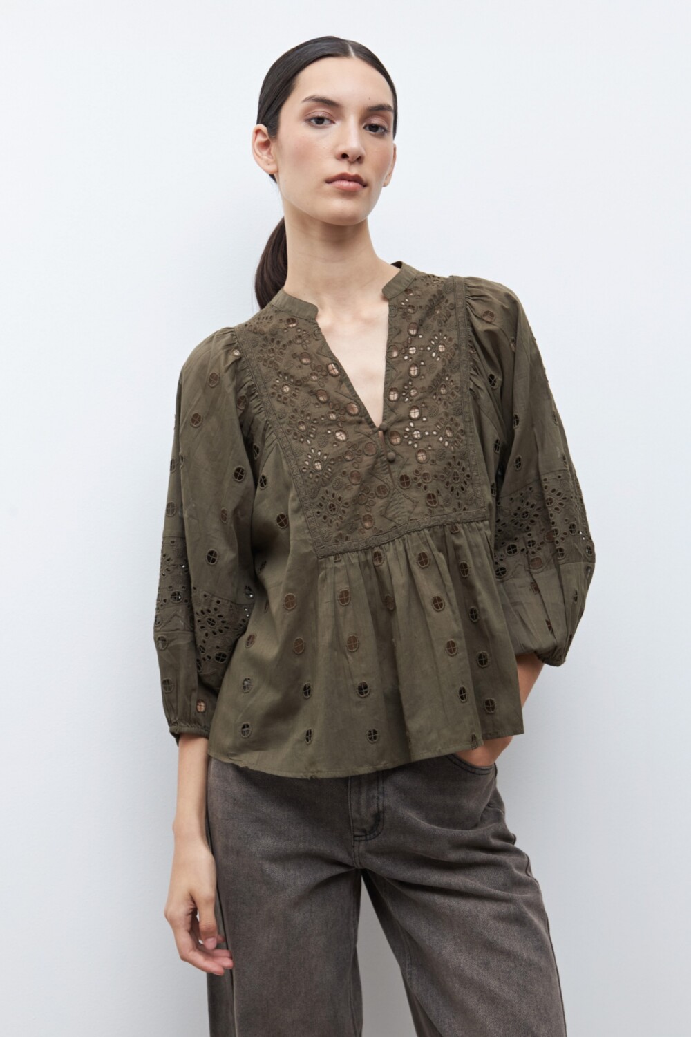 Blusa bordada con broderie - verde oliva