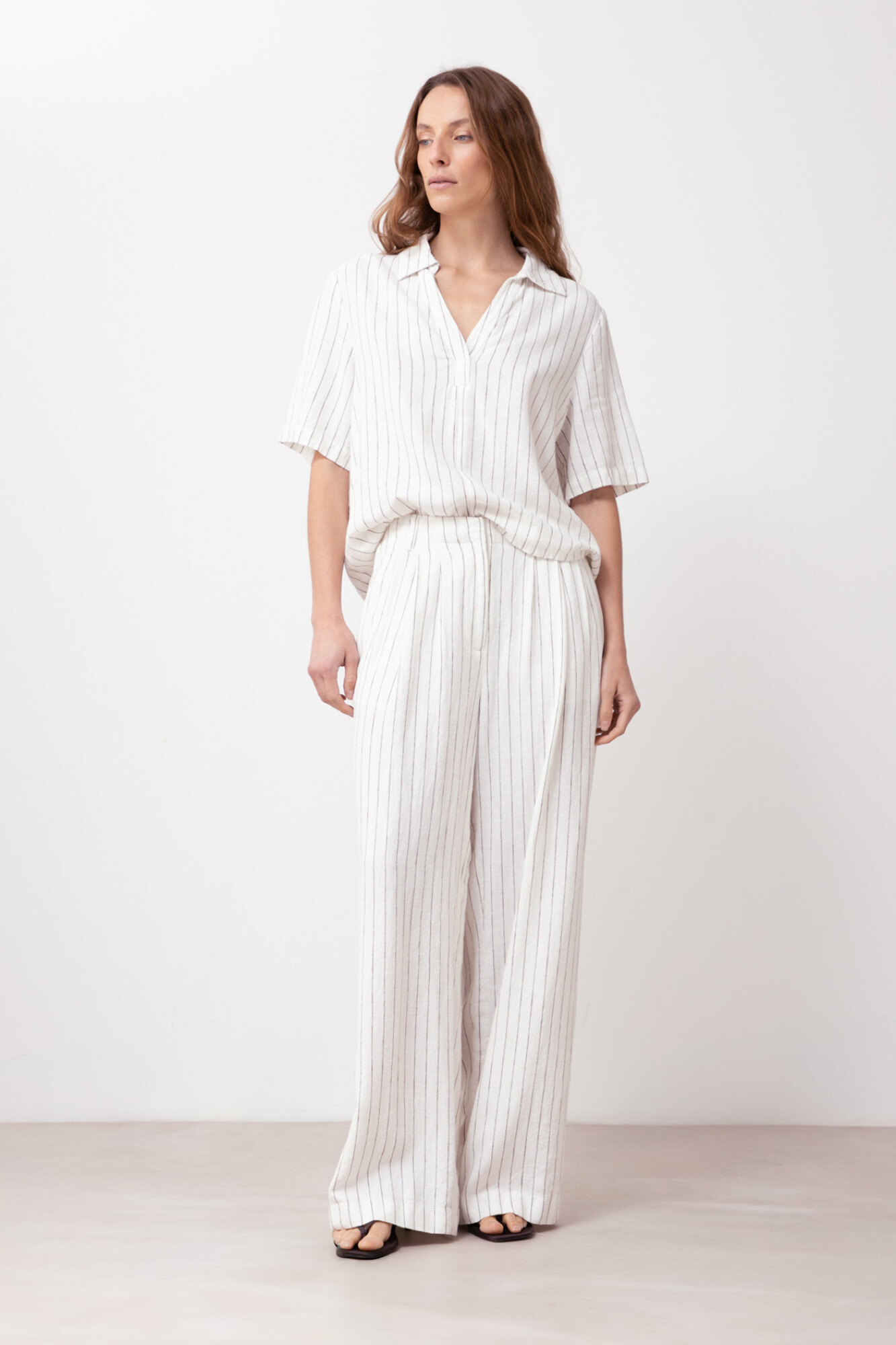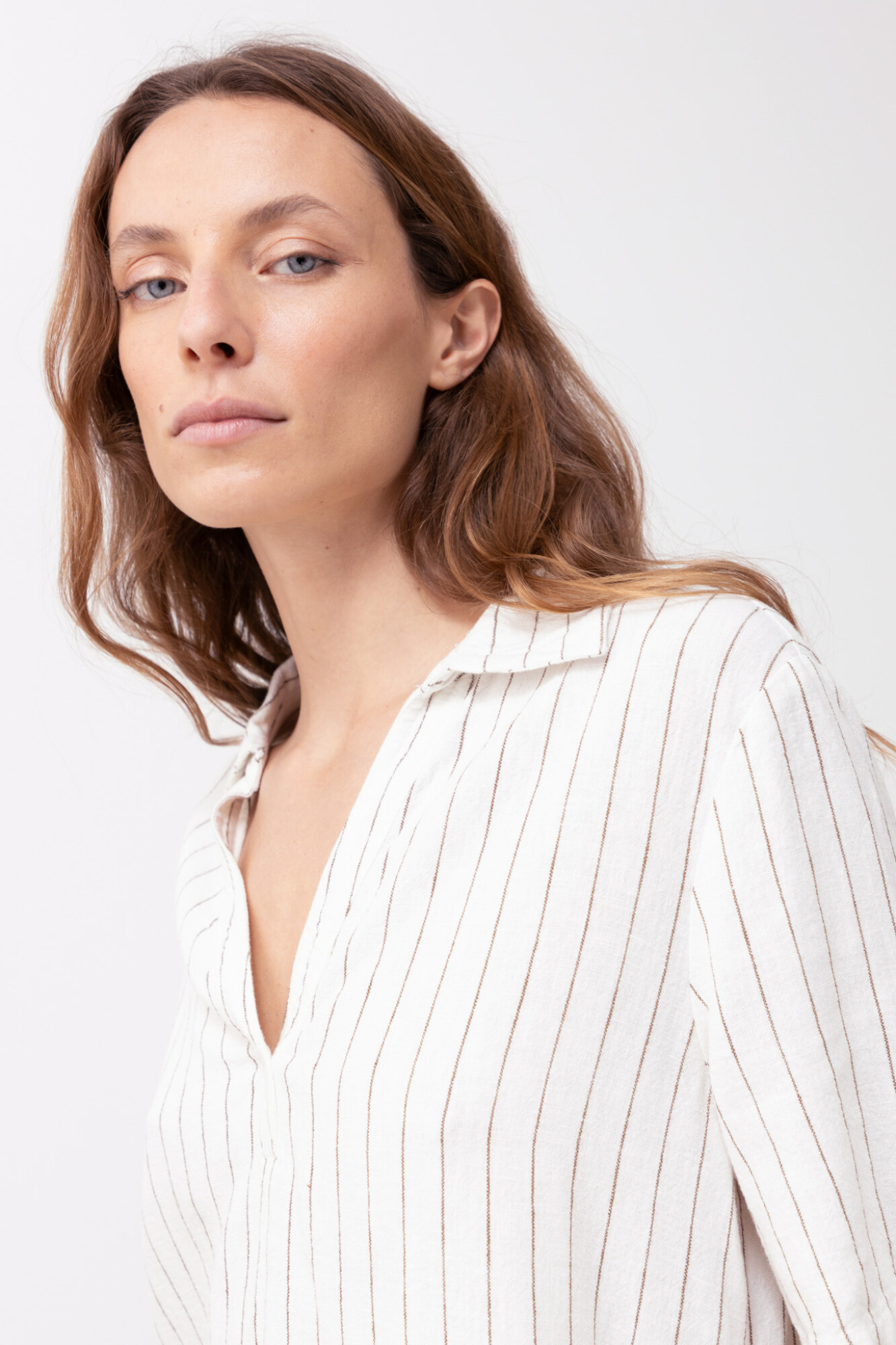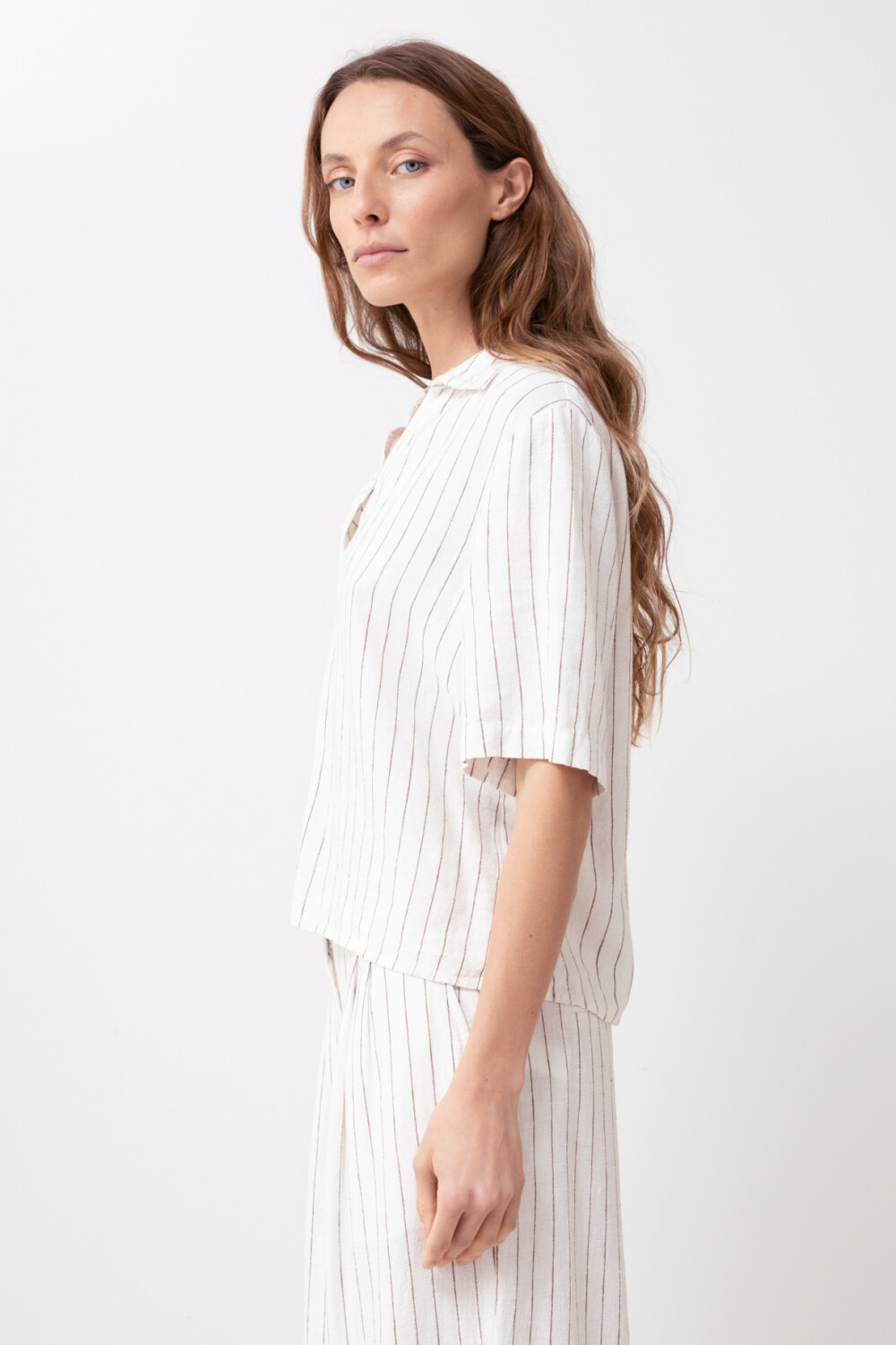 Blusa de lino rayada - blanco