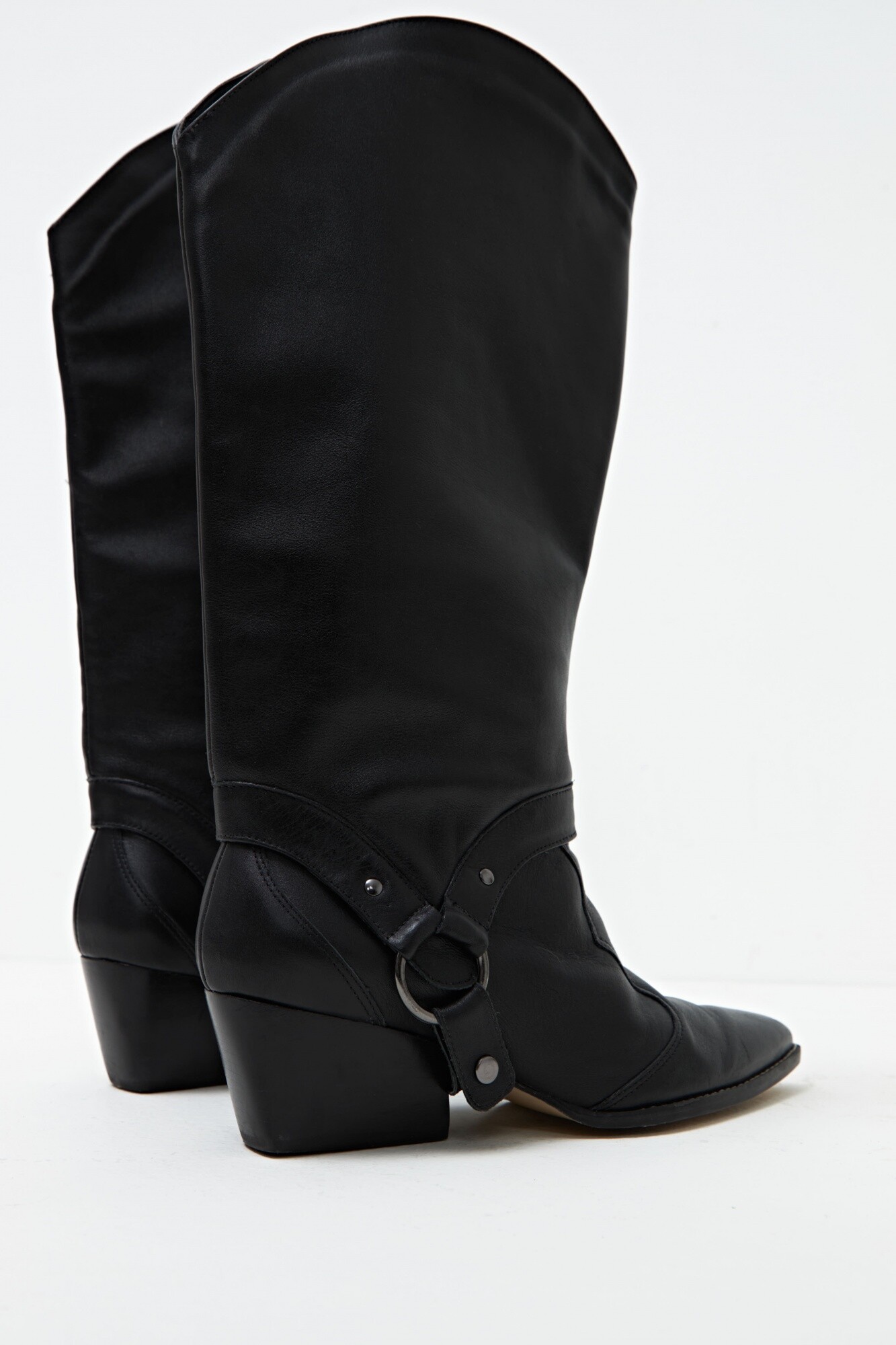 3563 Bota Bruna de cuero con polaina desmontable - negro