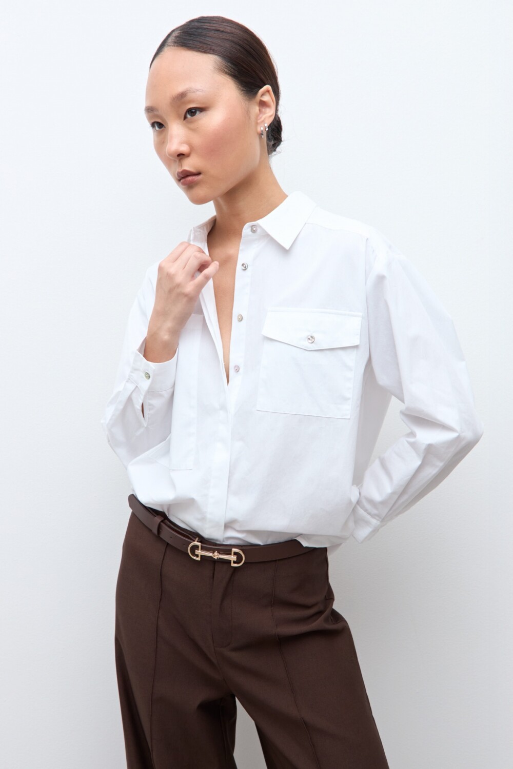 Camisa con bolsillos asimétricos - blanco