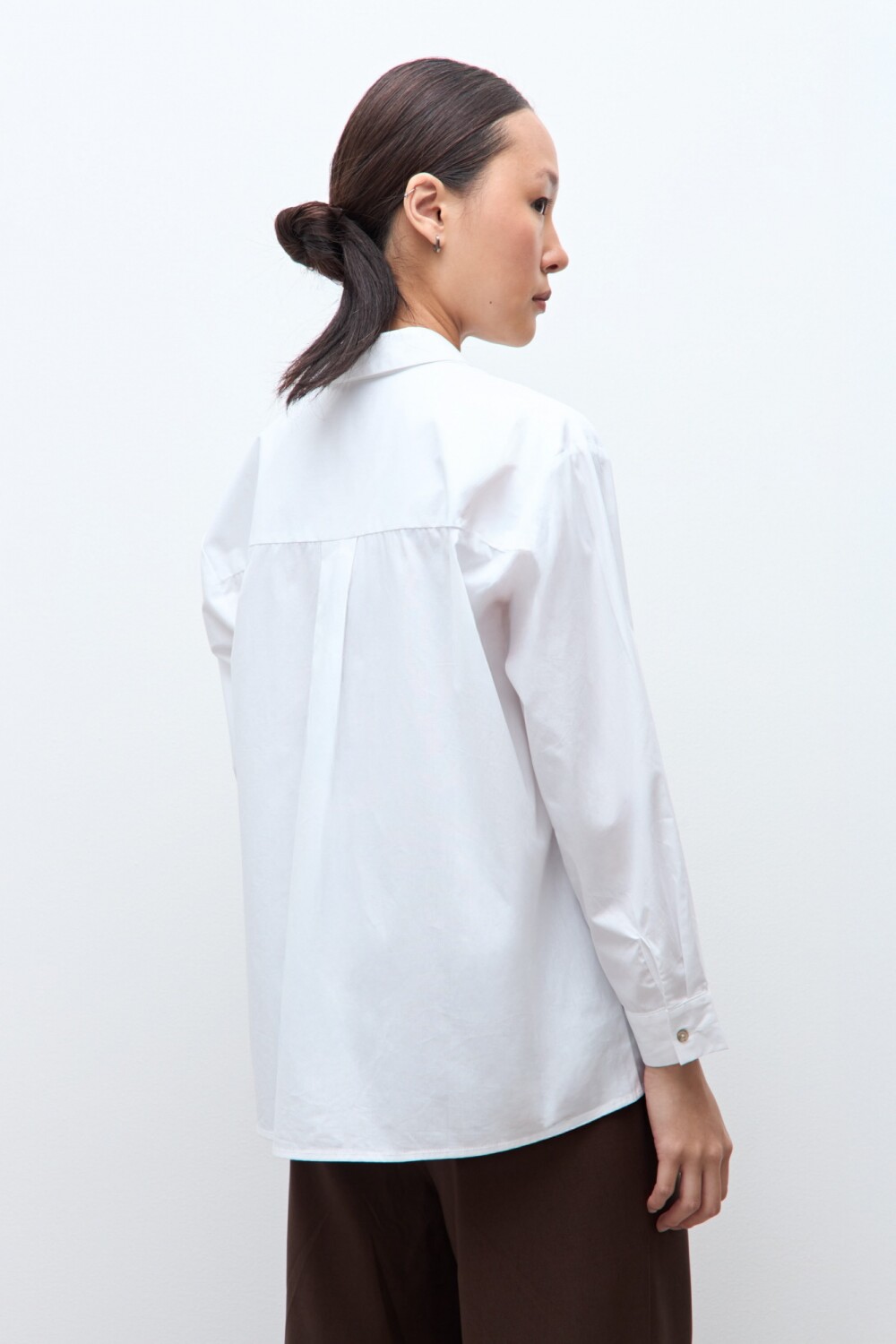 Camisa de cuello camisero. Manga larga. Bolsillos asimétricos en delantera.