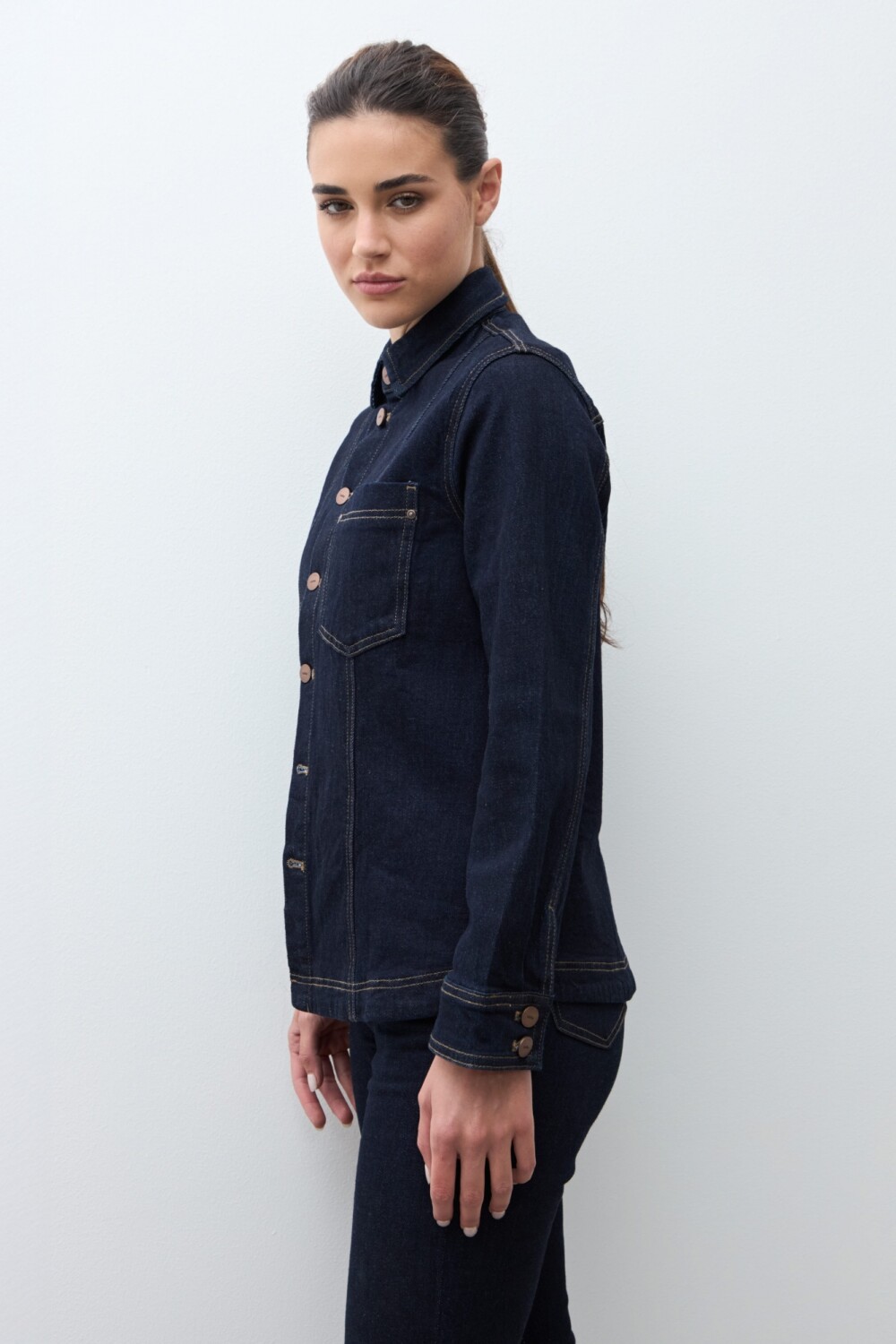 Camisa de jean. Manga larga. Bolsillo en delantera.