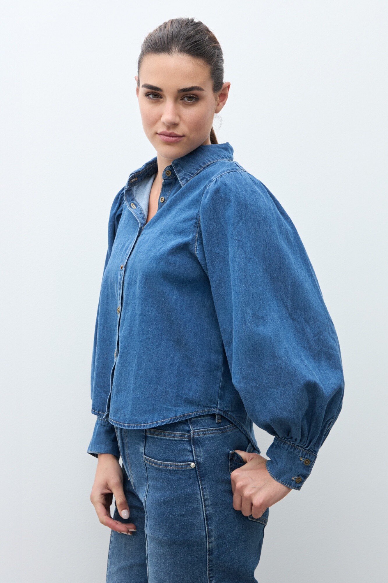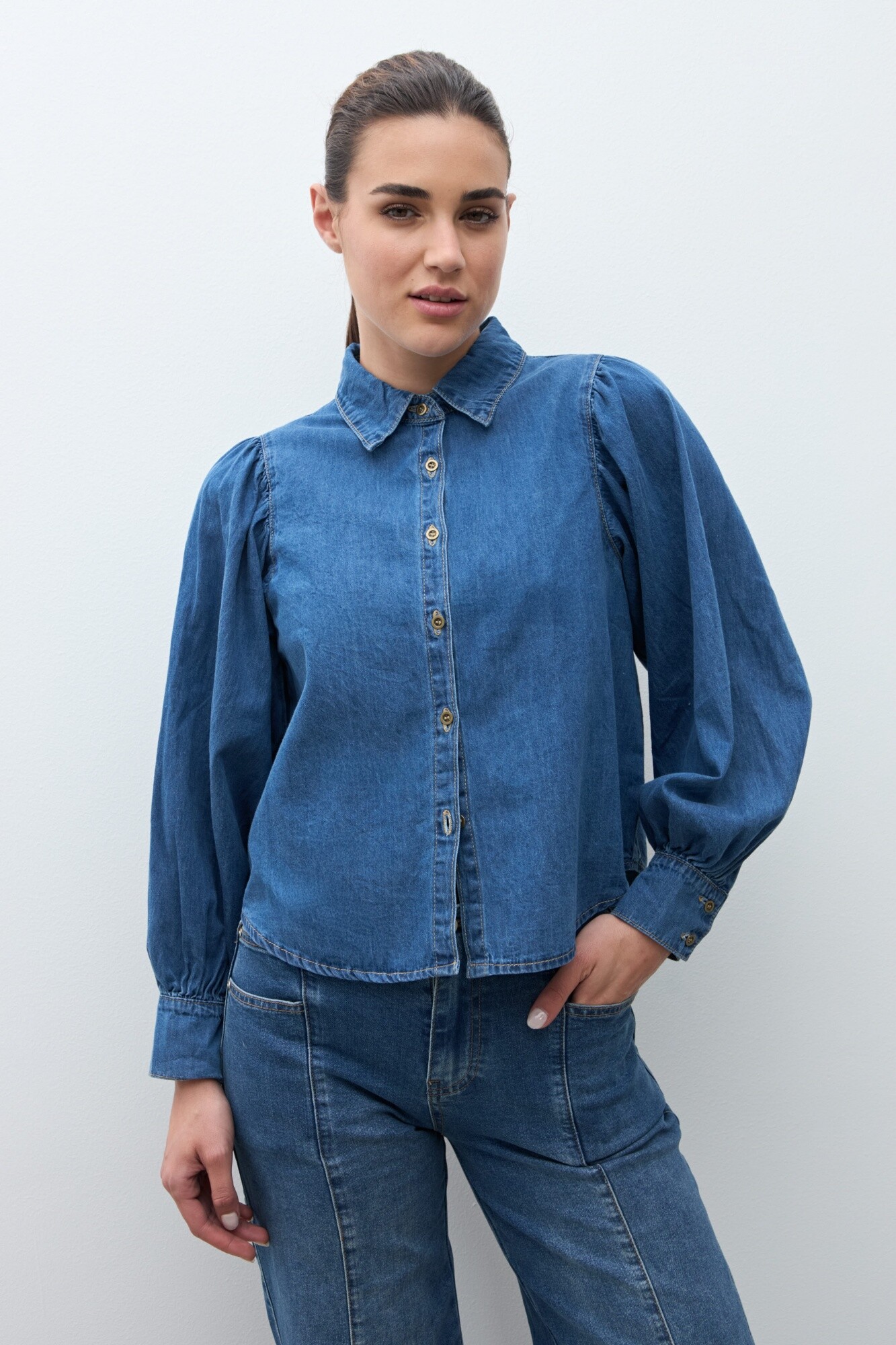 Nuevos Camisa de jean mangas abullonadas - jean medio