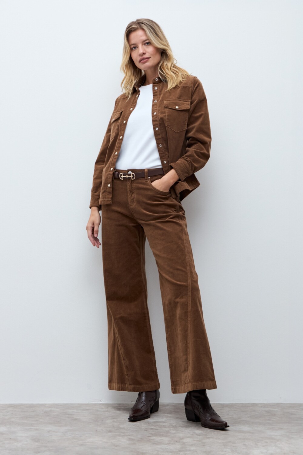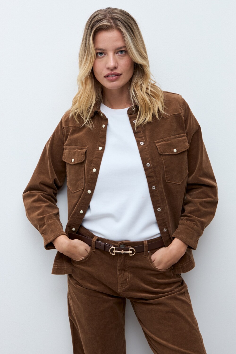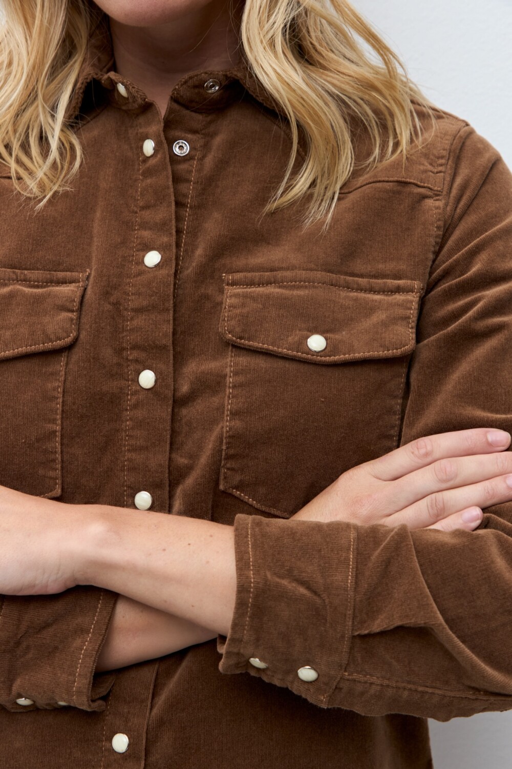 Camisa de cuello camisero. Manga larga. Bolsillos delanteros. Botones a presión.