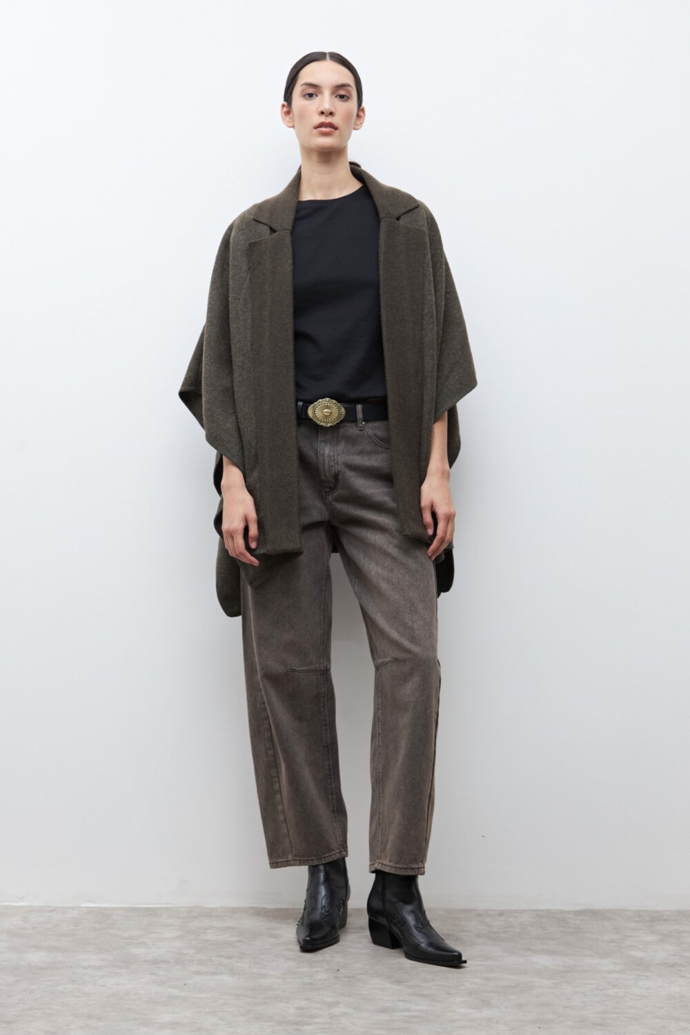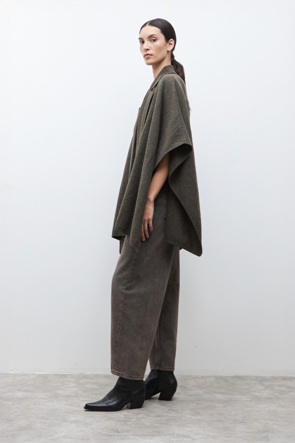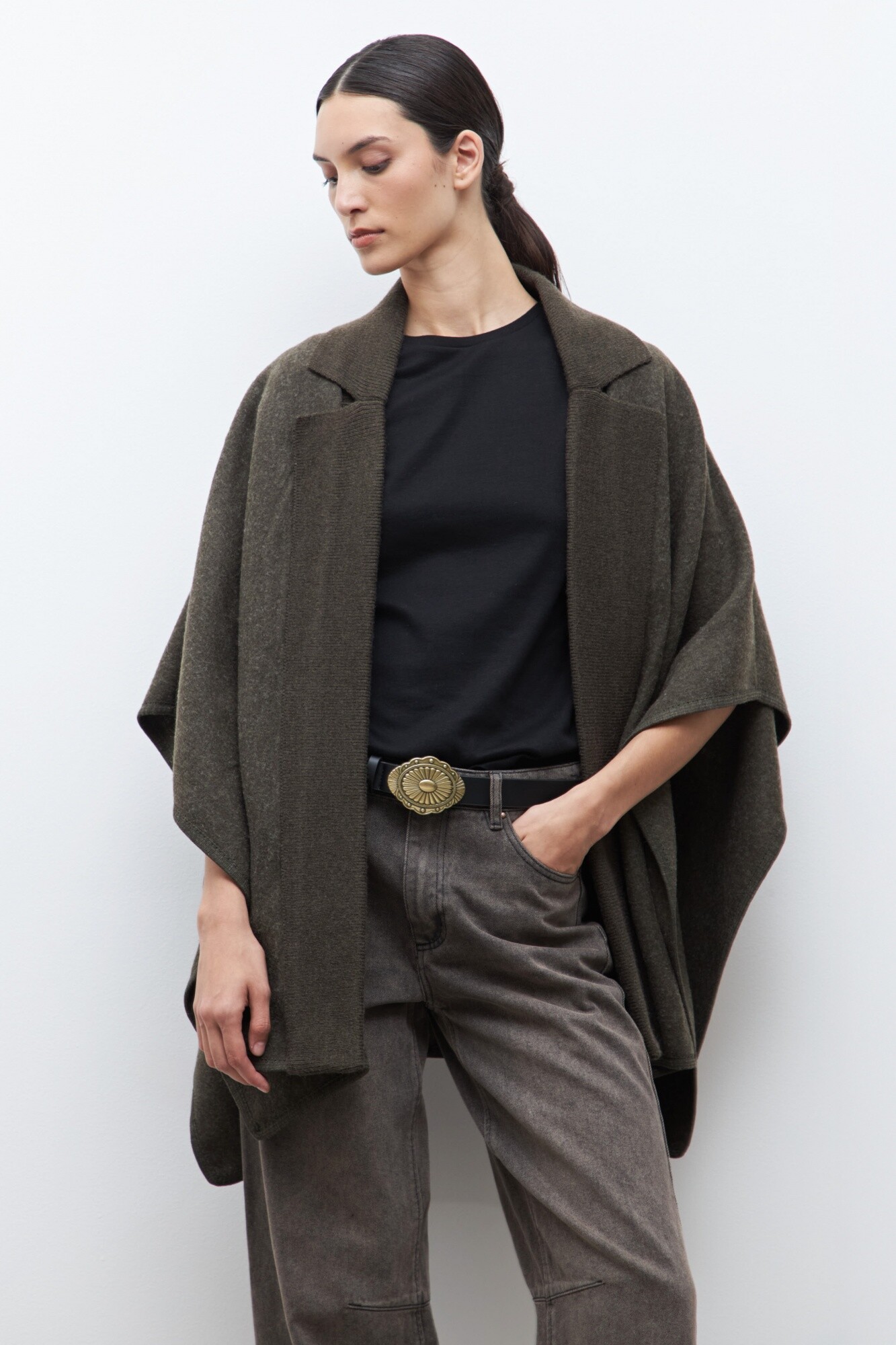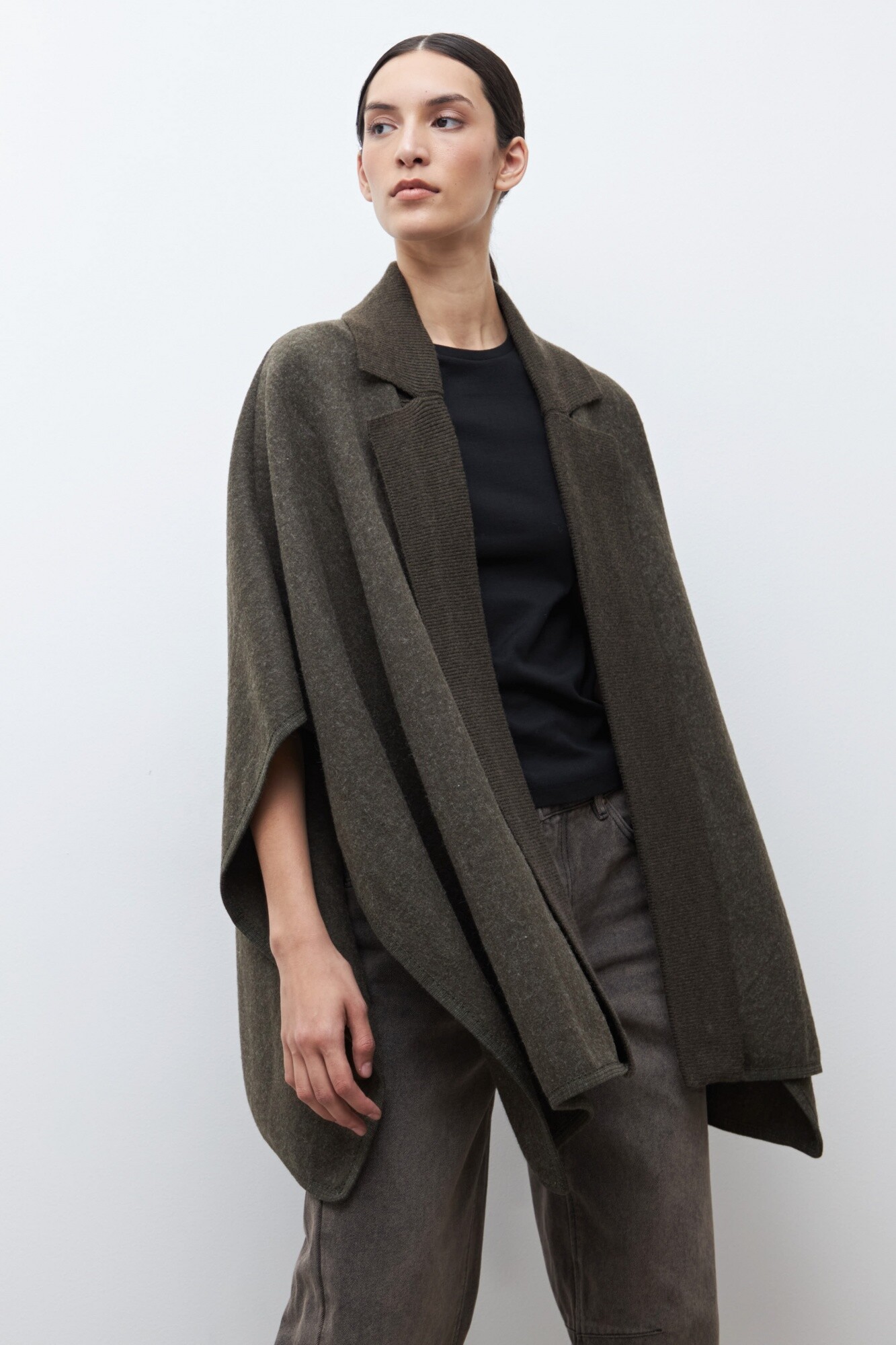 Capa solapa y cuello tejido - verde oliva