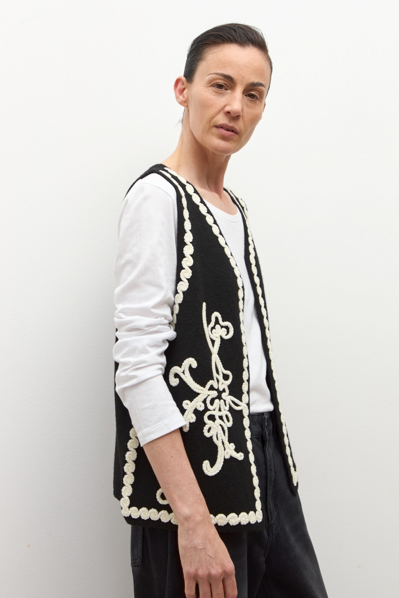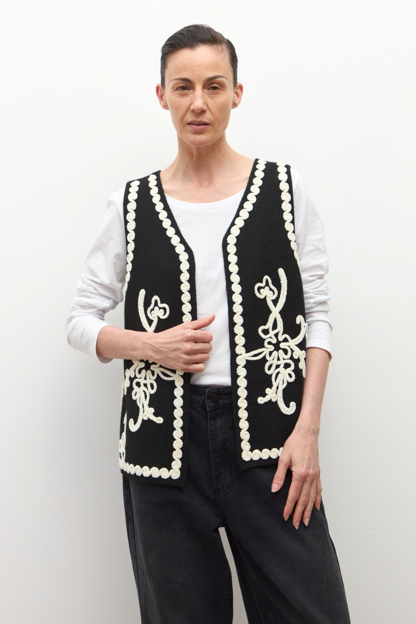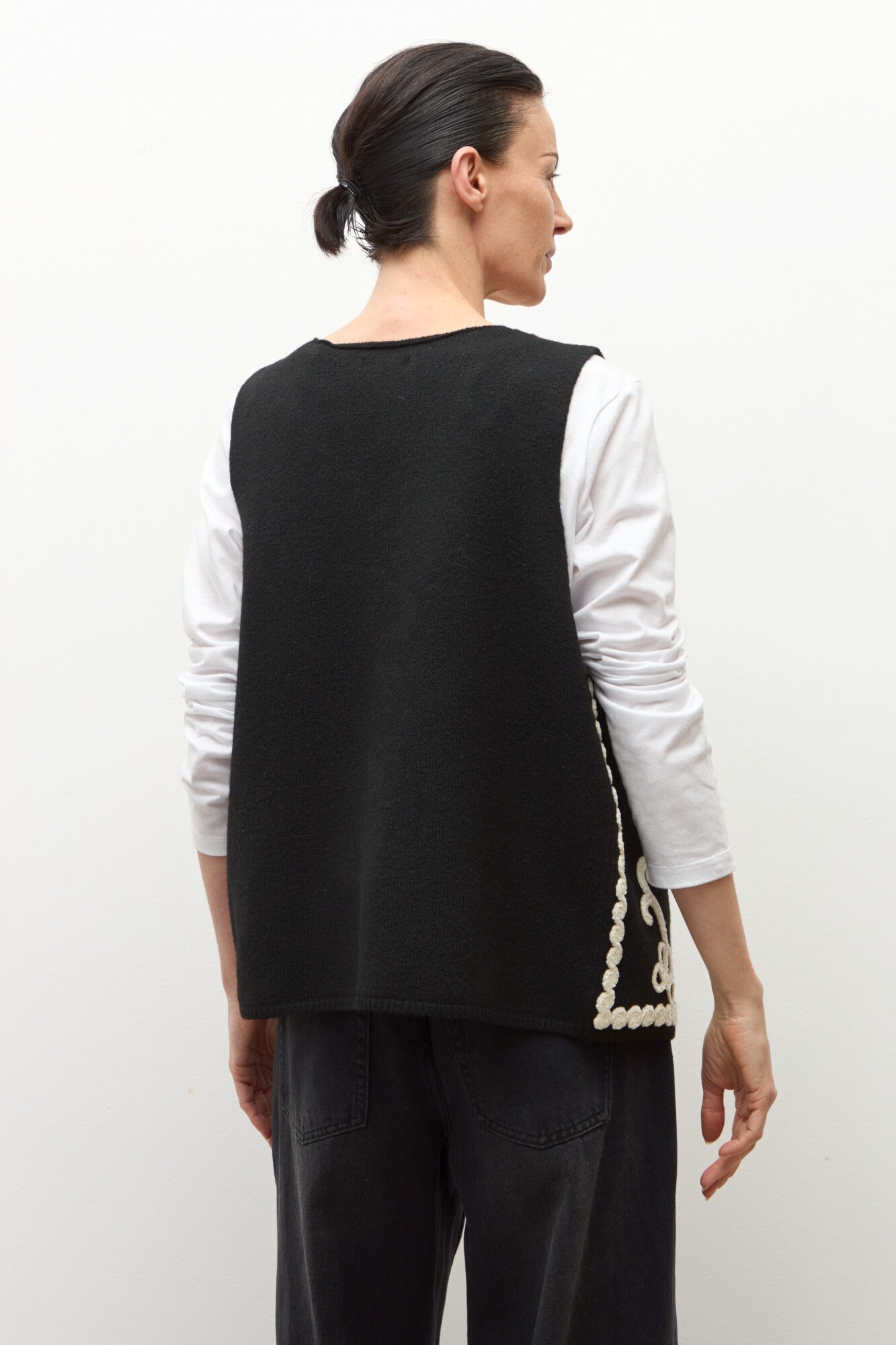 Chaleco tejido con bordado - negro