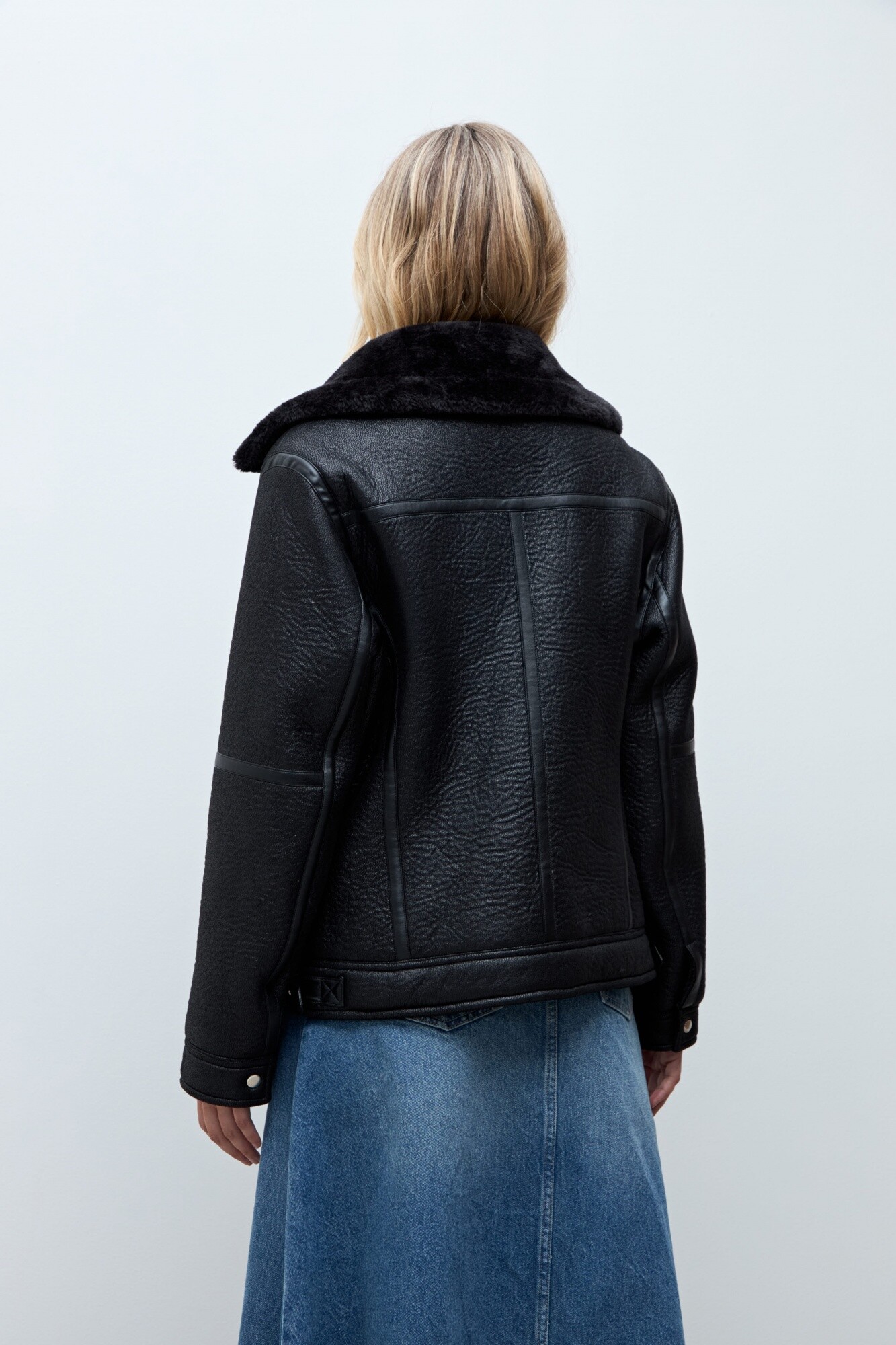 Chaqueta biker eco cuero con piel - negro