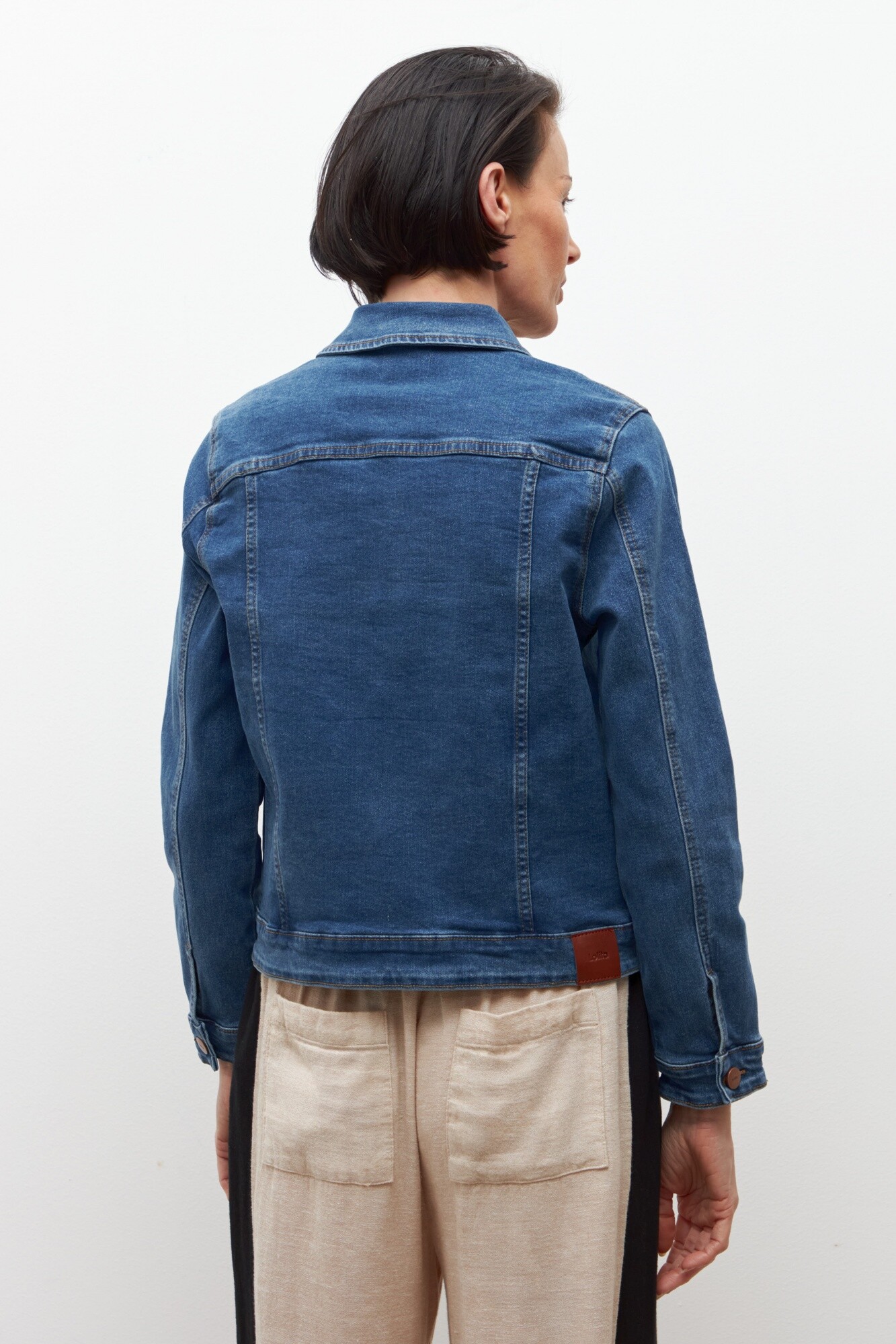 Chaqueta de cuello solapa y manga larga acabada en puño.