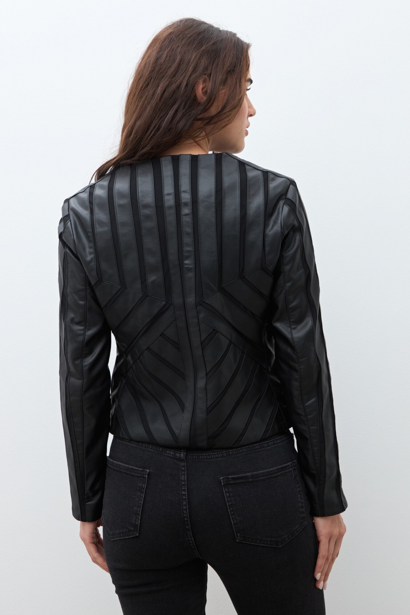 Chaqueta de eco cuero con detalles en tul.