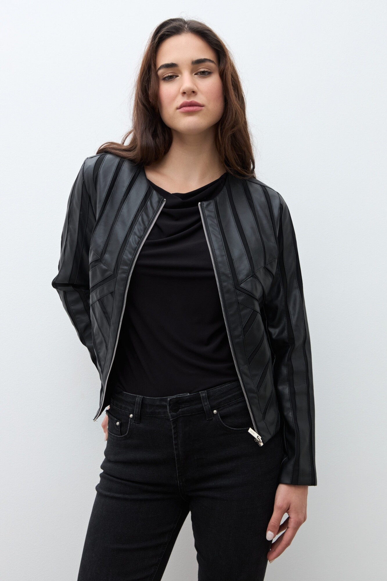 Chaqueta eco cuero con tul - negro