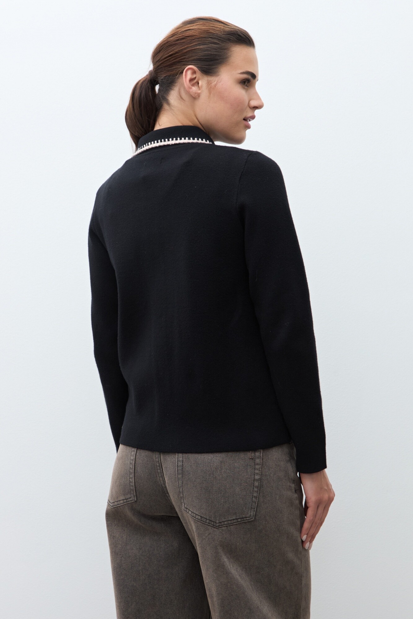 Chaqueta tejida bordado en contraste - negro
