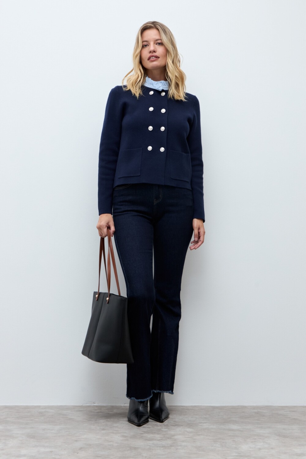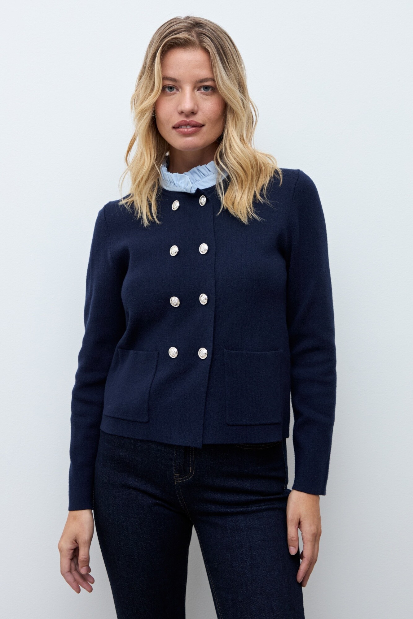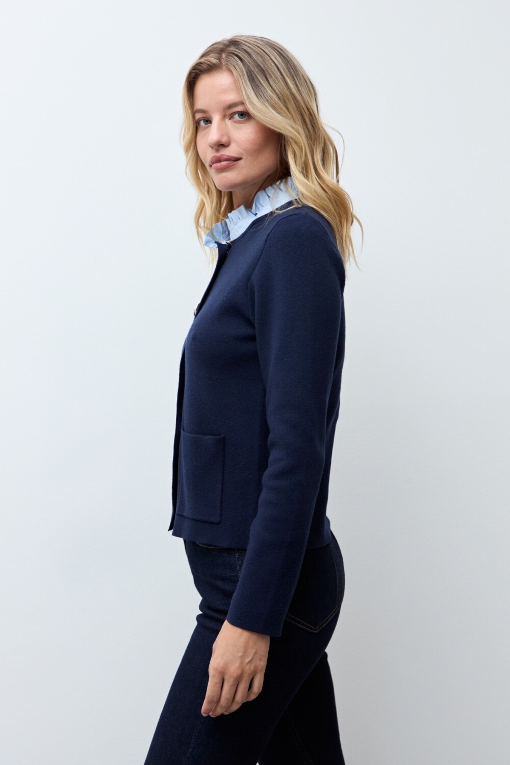 Chaqueta tejida cuello desmontable - azul marino