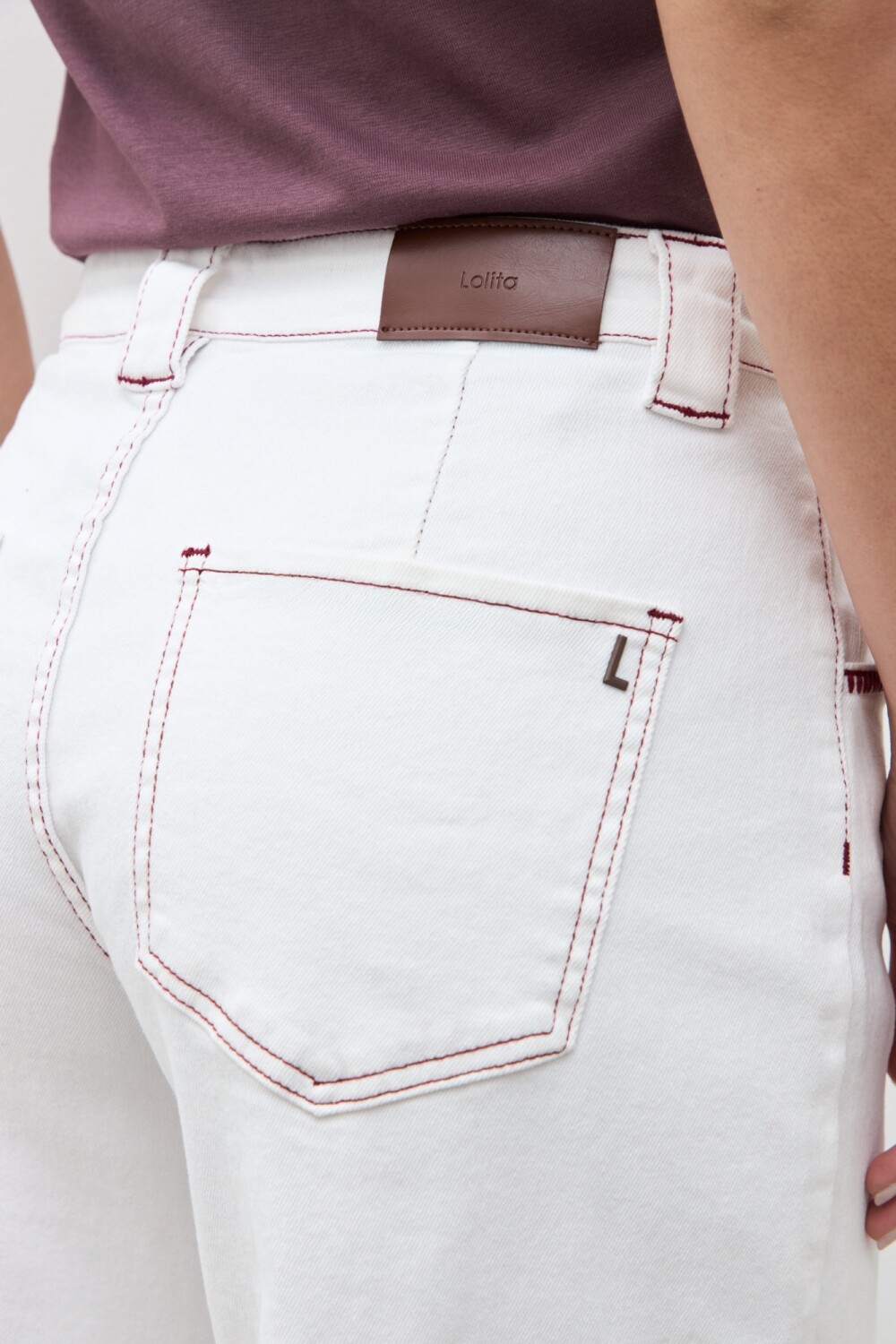 Jean culotte de tiro alto. Detalle de bordado en contraste.