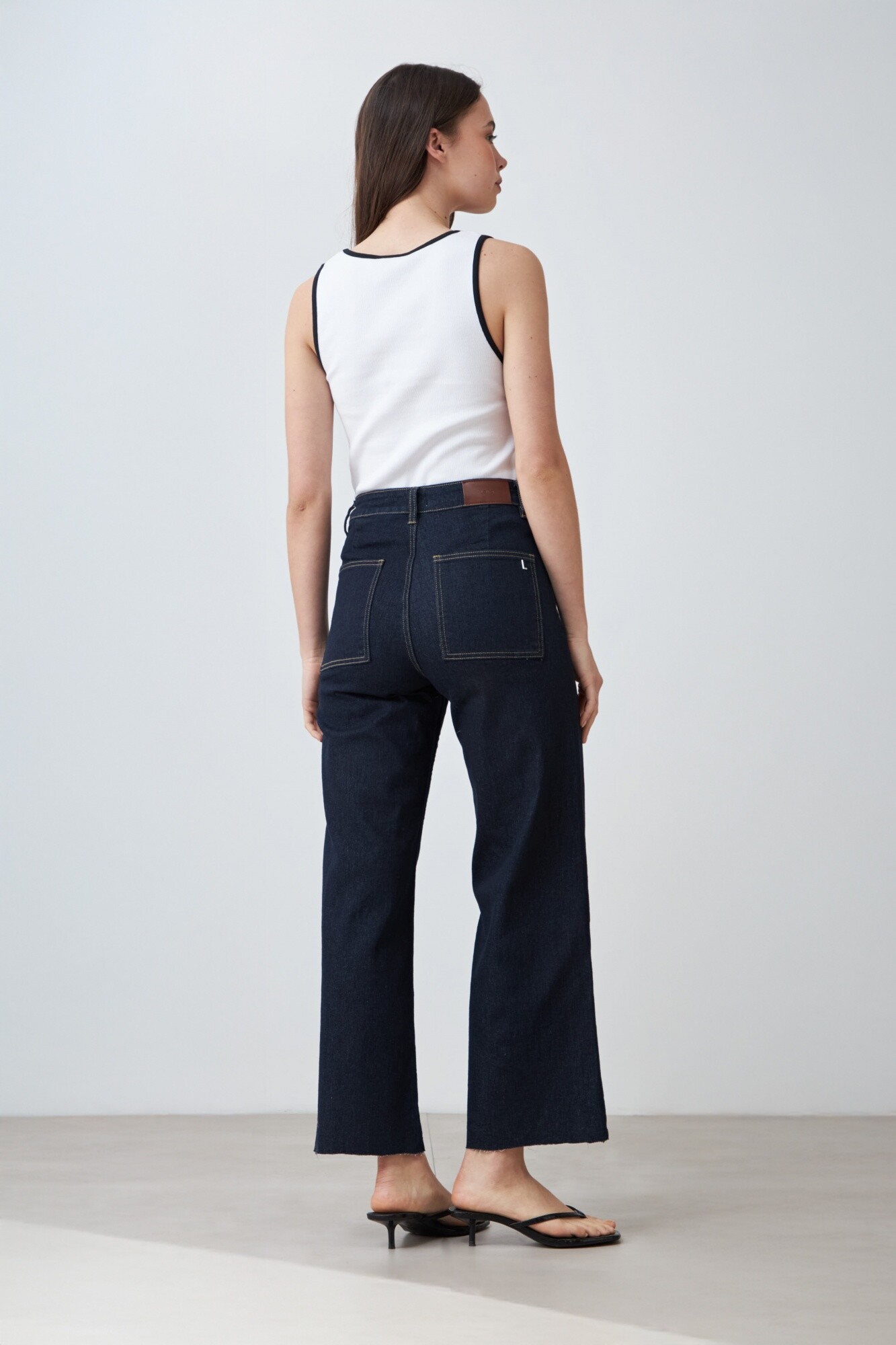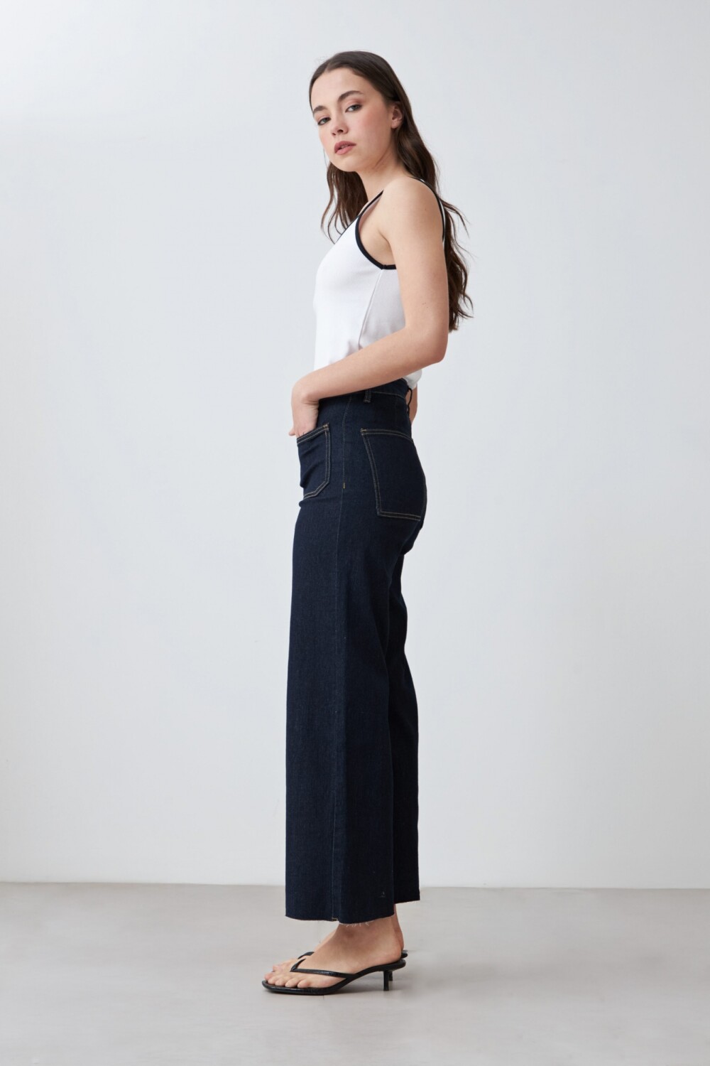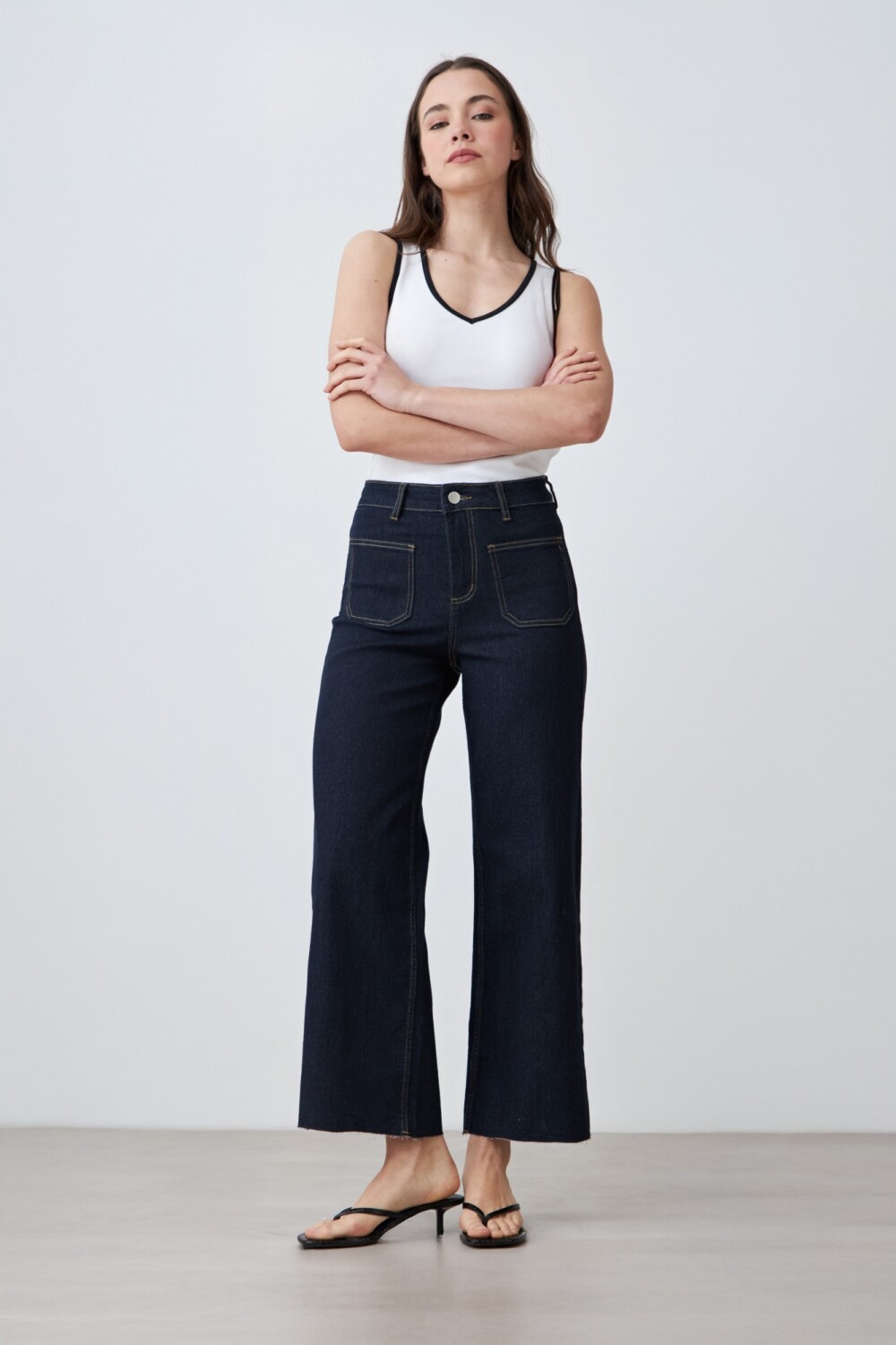 Jean culotte de tiro alto. Bolsillos delanteros.