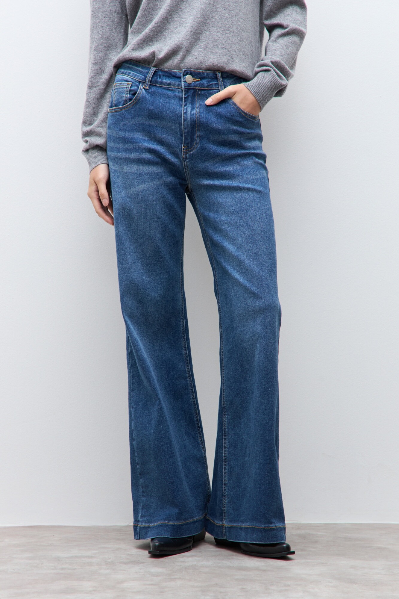 Jean flare de tiro alto.