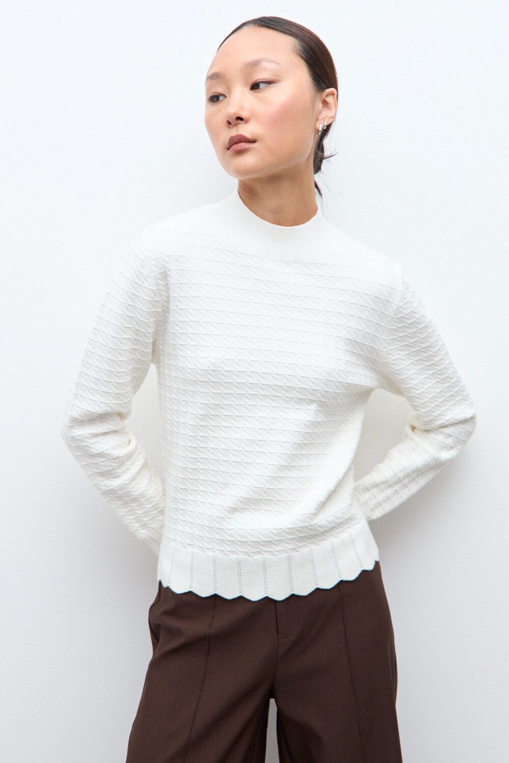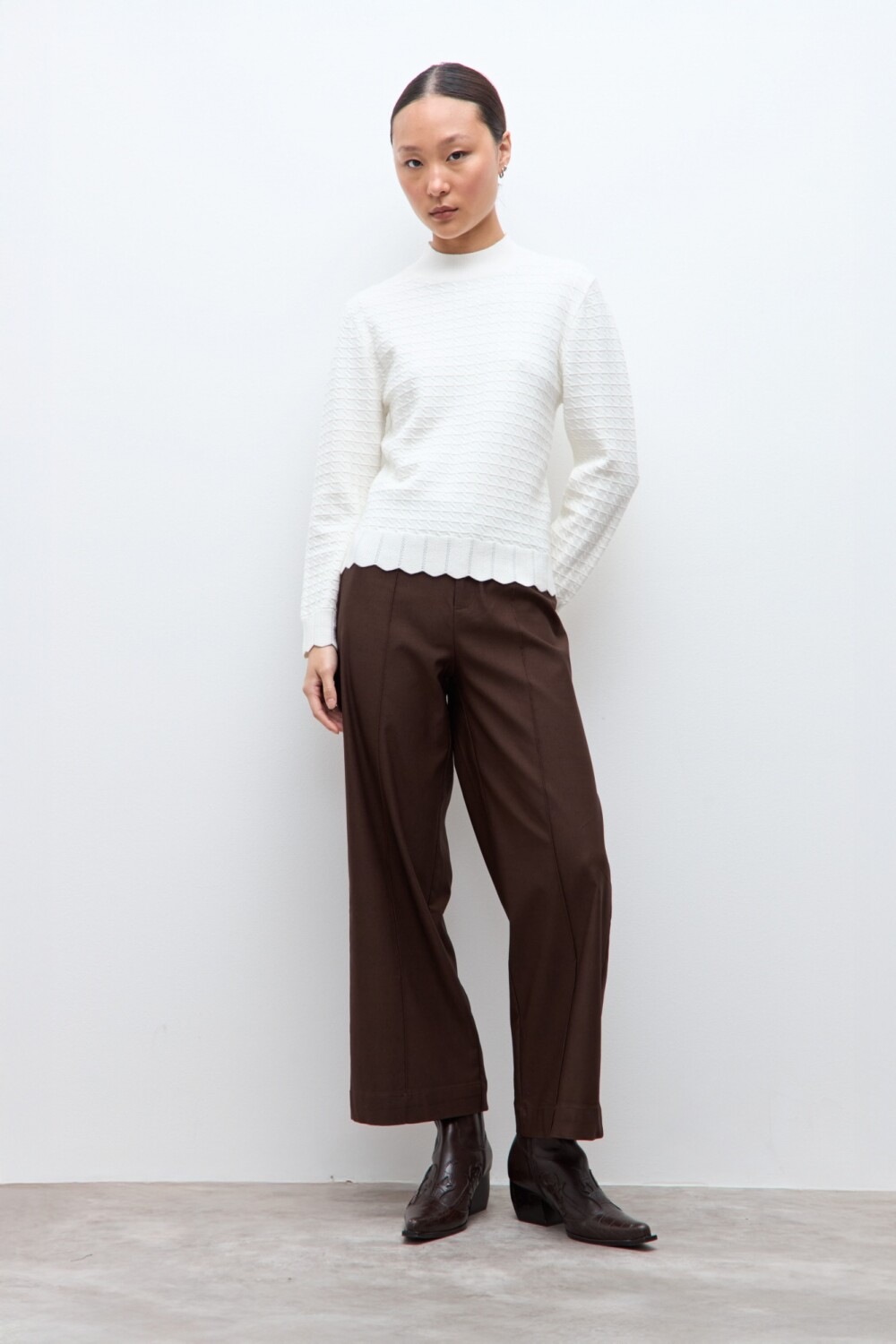 Media polera tejida con estructura. Manga larga.