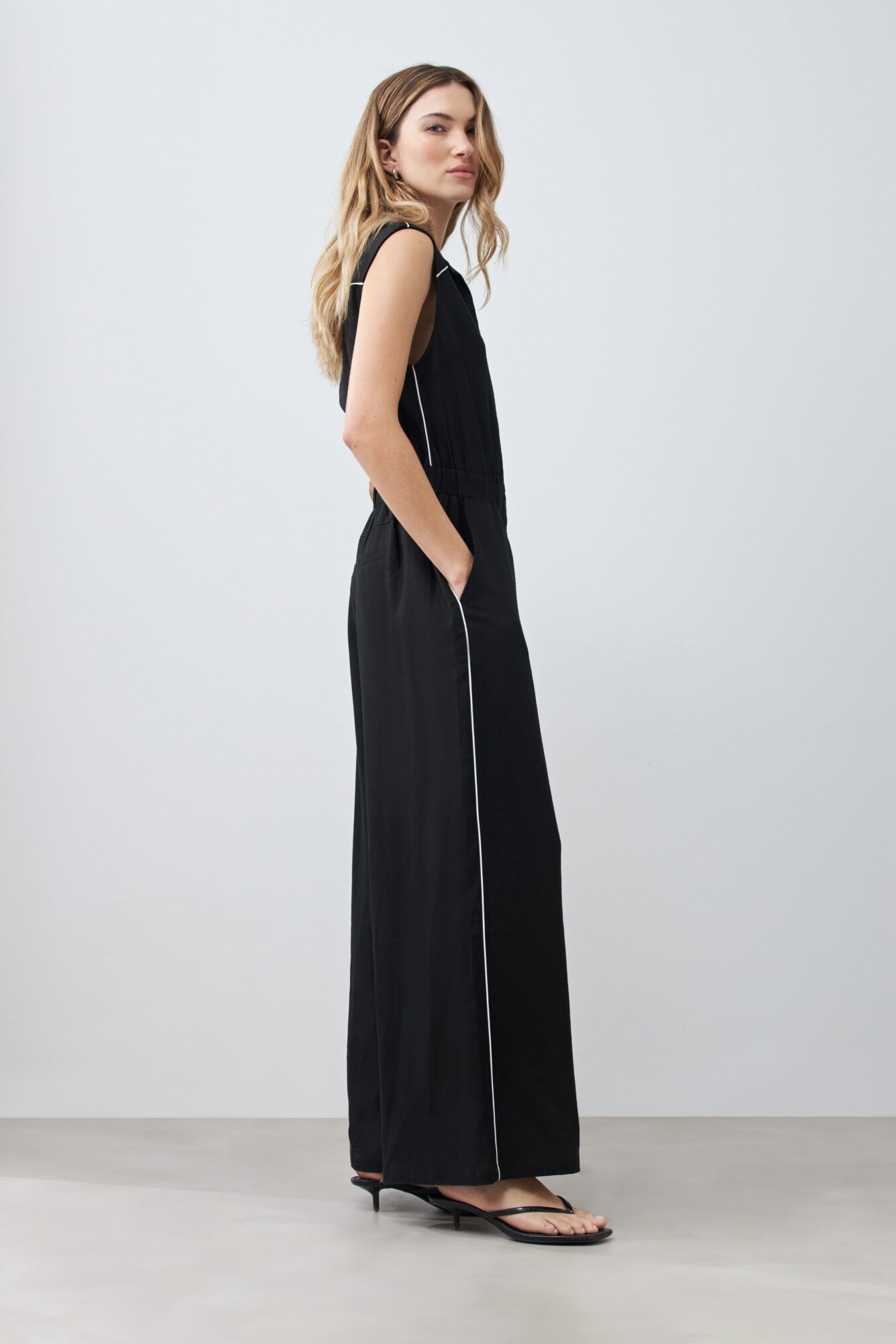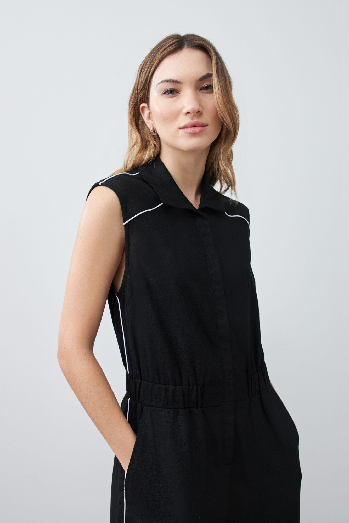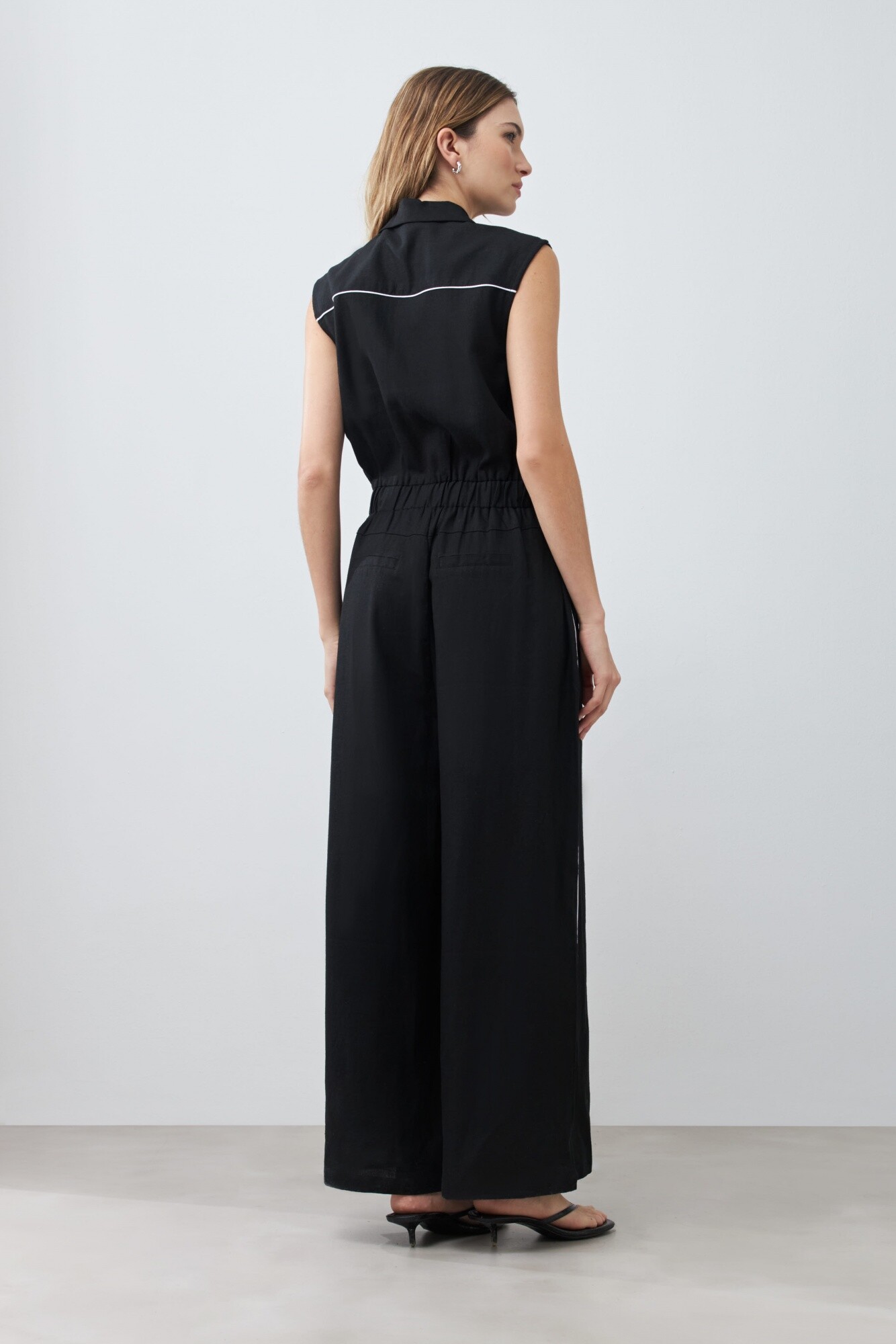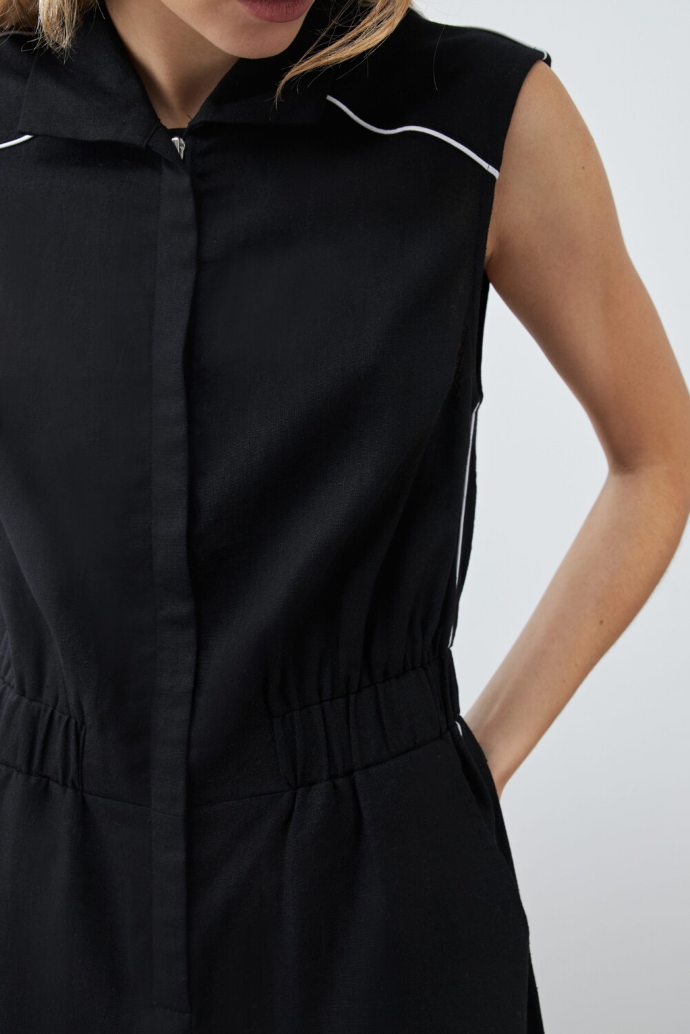 Mono de lino con vivo en contraste - negro
