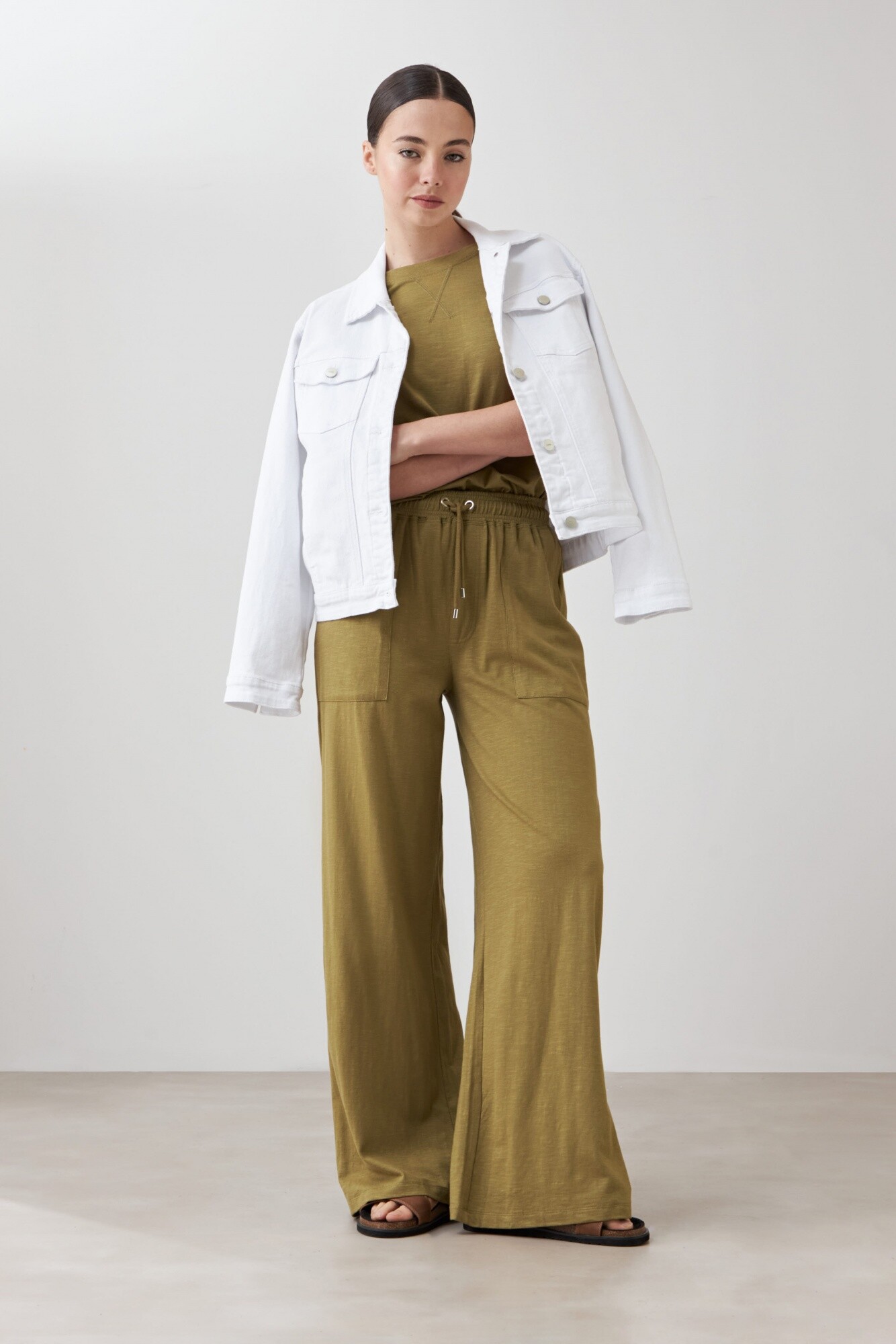 Nuevos Pantalón con pretina elastizada - verde oliva