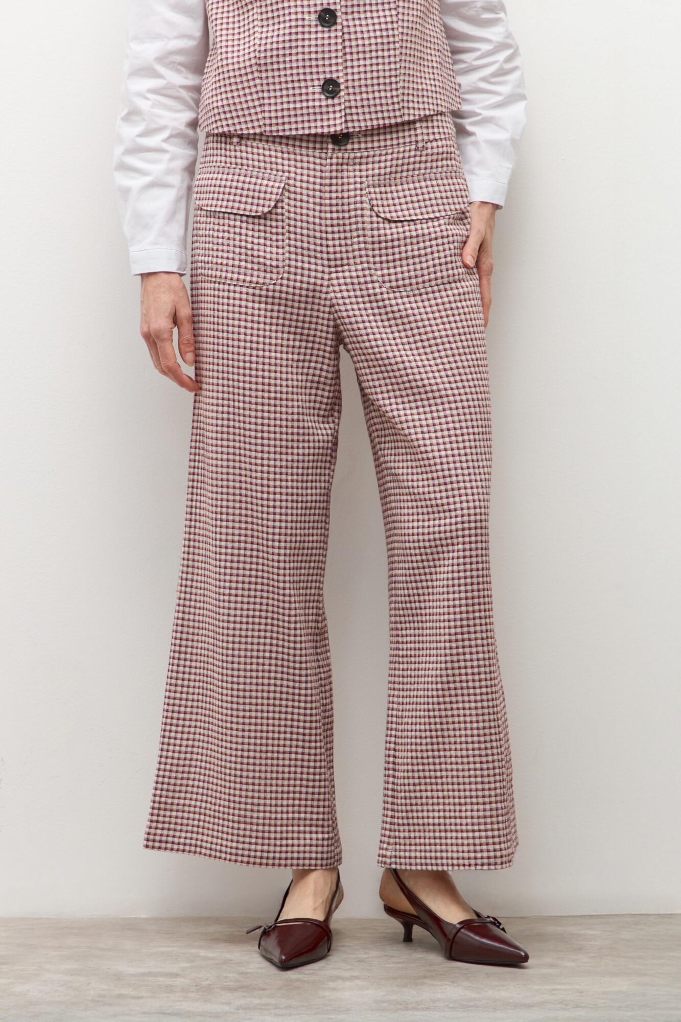 Pantalón culotte a cuadros - beige
