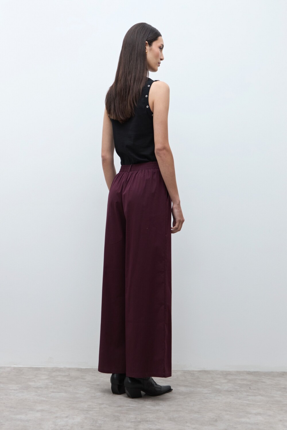 En color ciruela la altura de la modelo es 181cm. Sus talles son S / 36