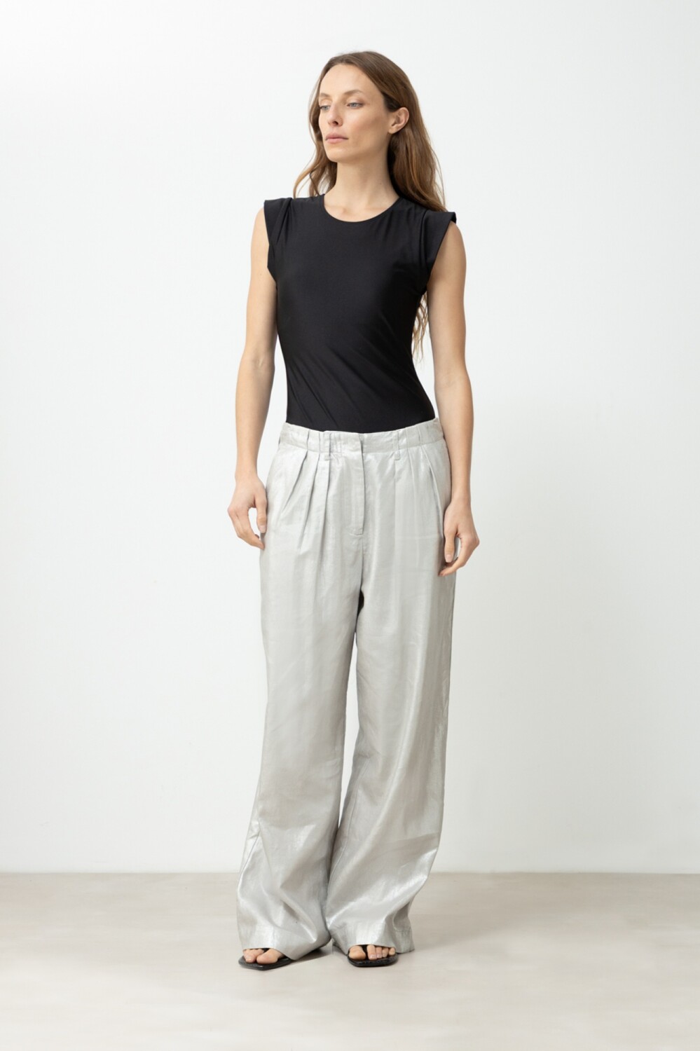 Nuevos Pantalón pinzado de lino metalizado - plateado