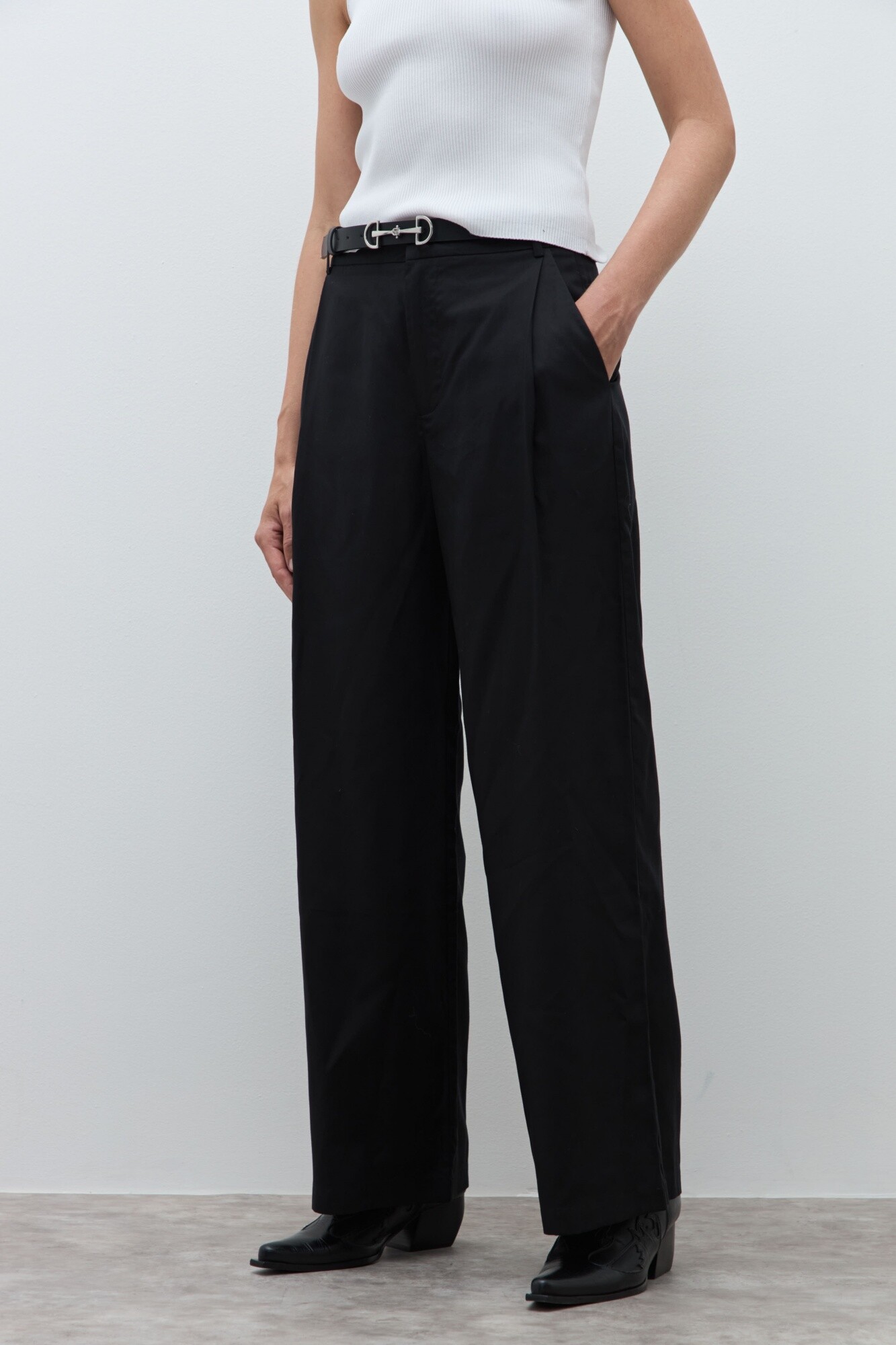 Pantalón pinzado. Tiro medio.