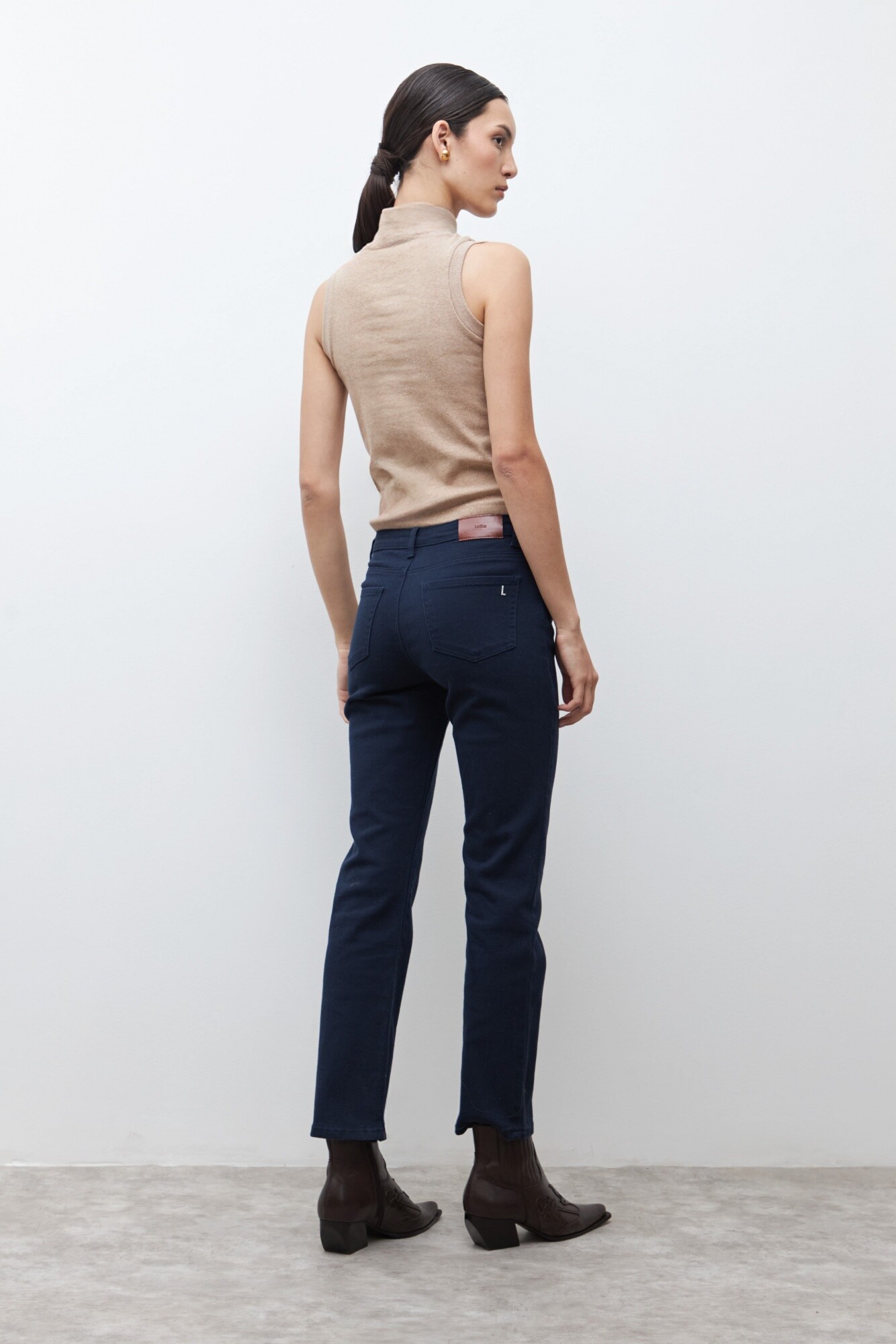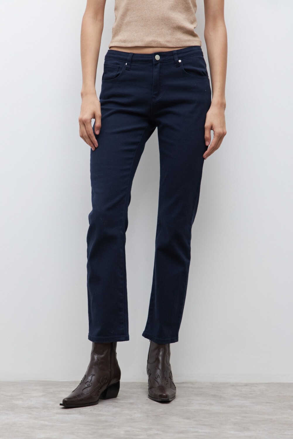 Pantalón recto de tiro medio. Cinco bolsillos.