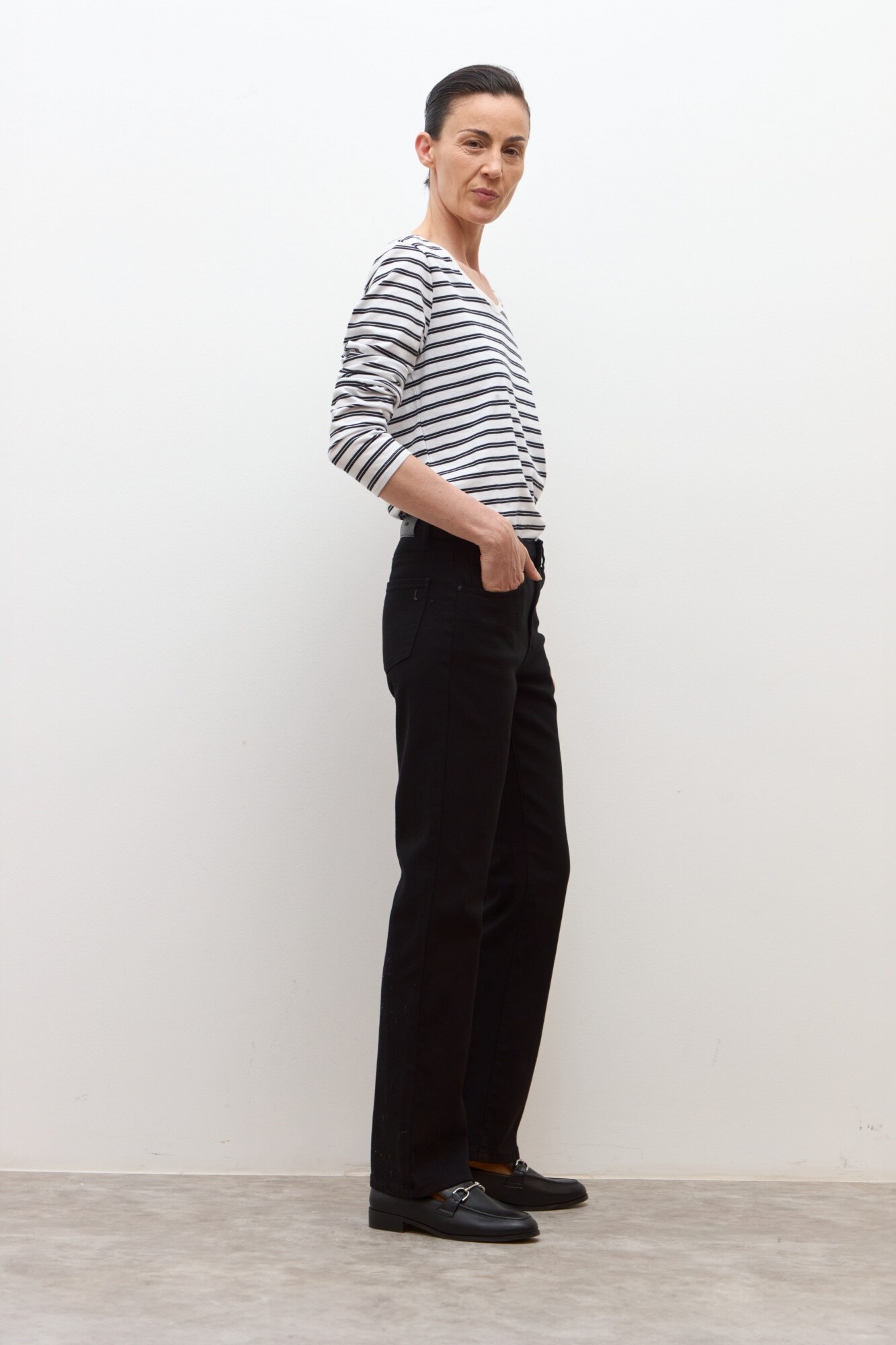 Pantalón recto de tiro medio. Cinco bolsillos.