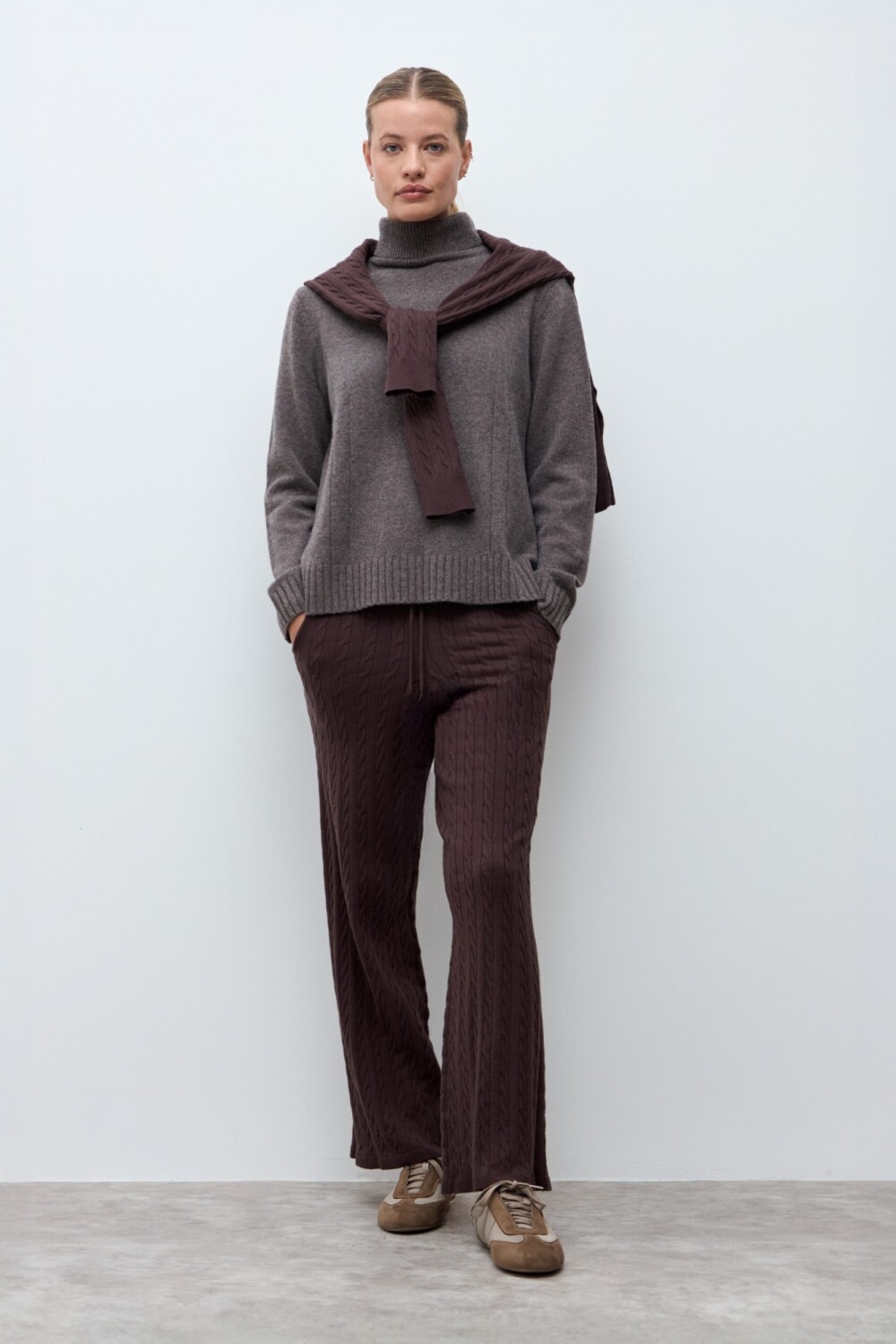 Pantalón tejido estructuras - chocolate