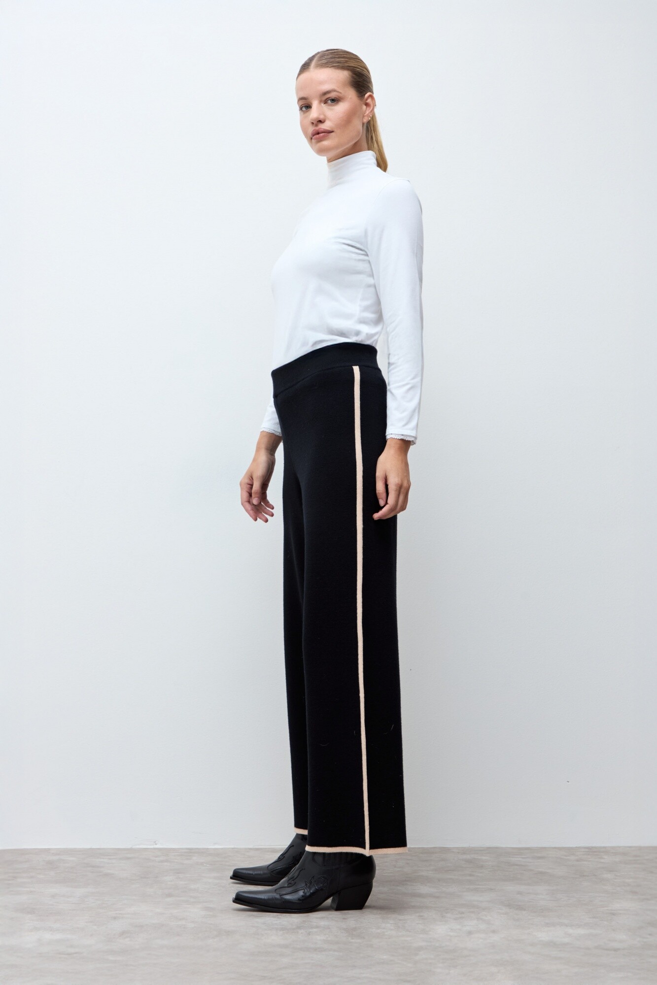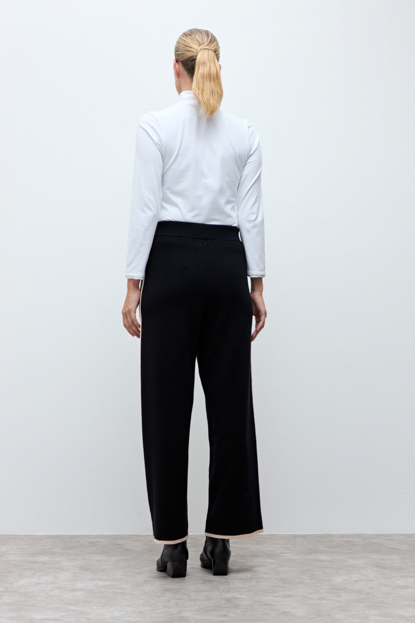 Pantalón tejido. Cintura elástica. Tiro alto. Detalle bicolor en lateral.