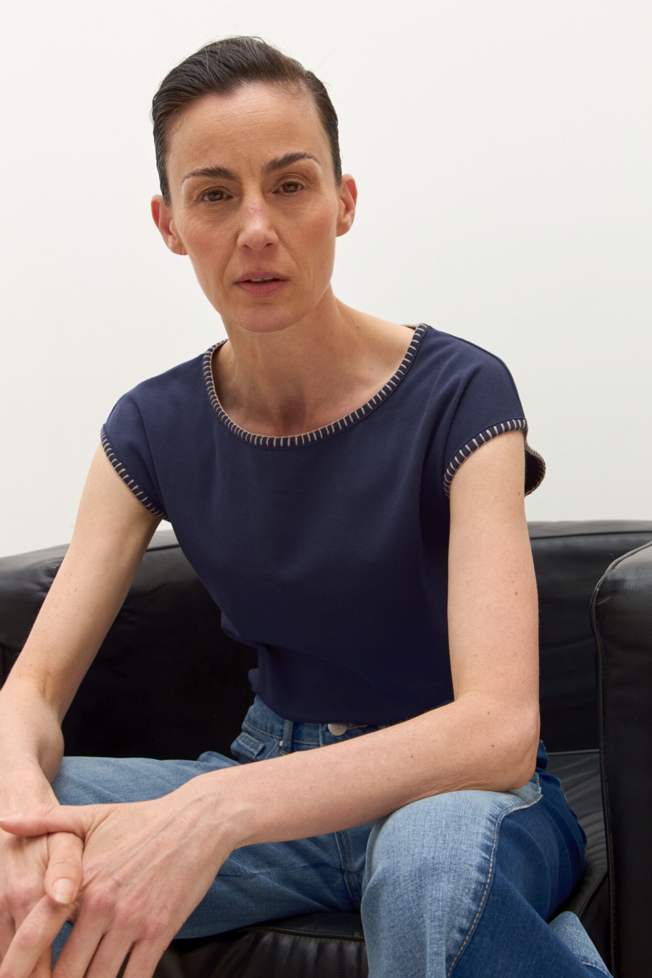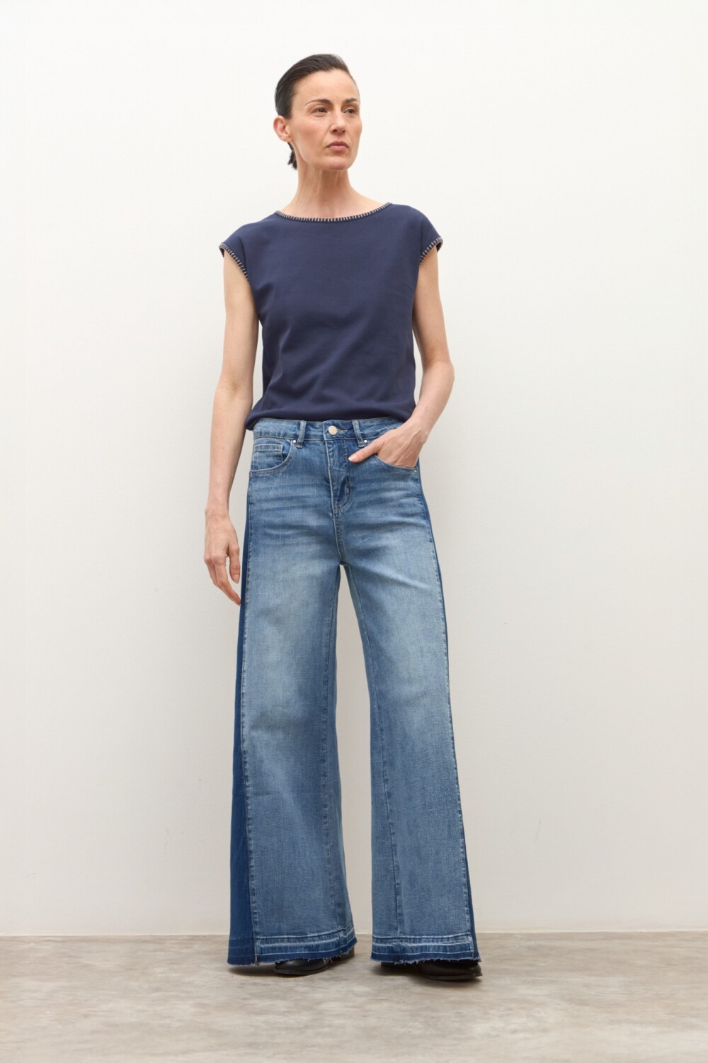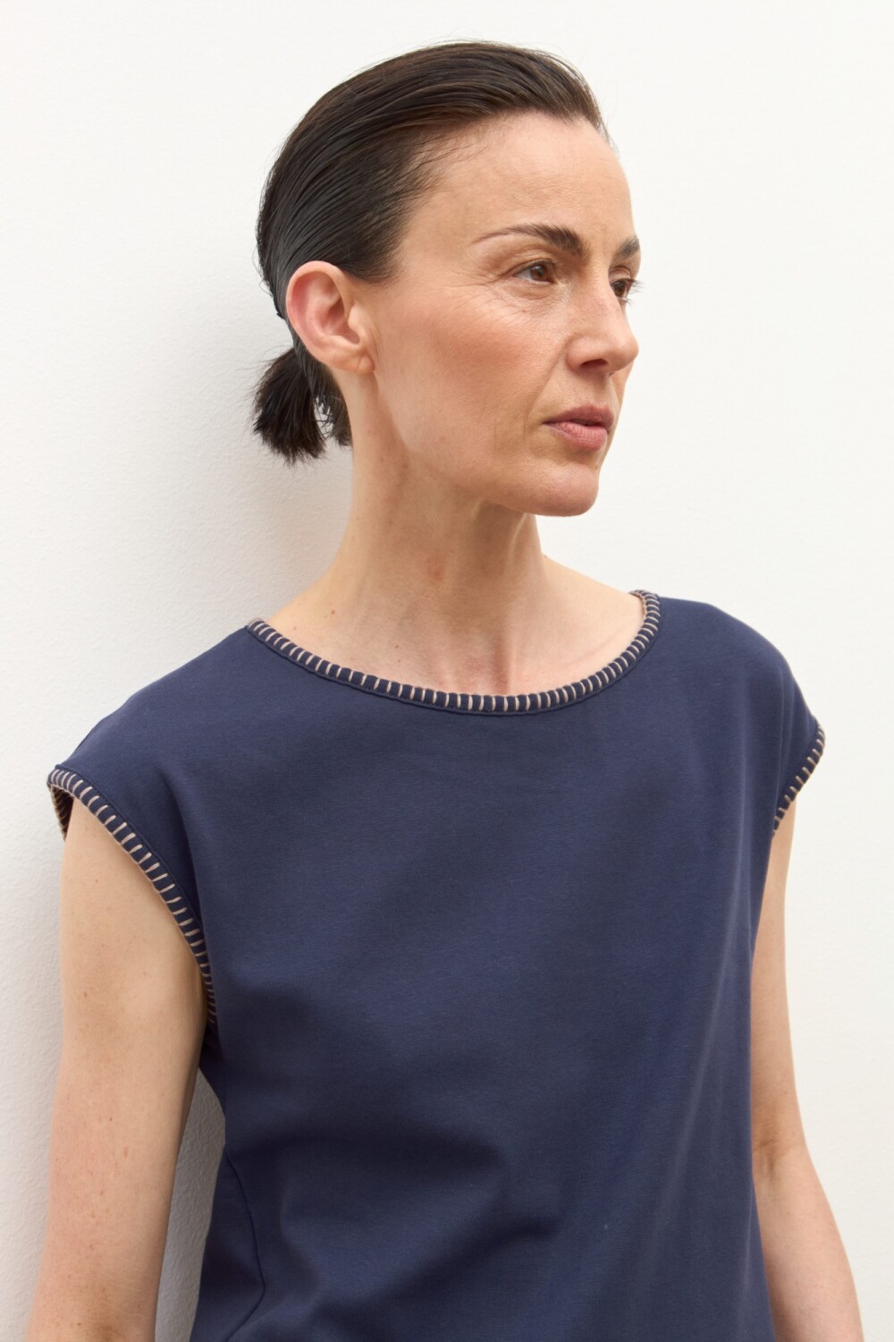 Remera de escote a la base. Manga corta. Bordado en escote y sisa.
