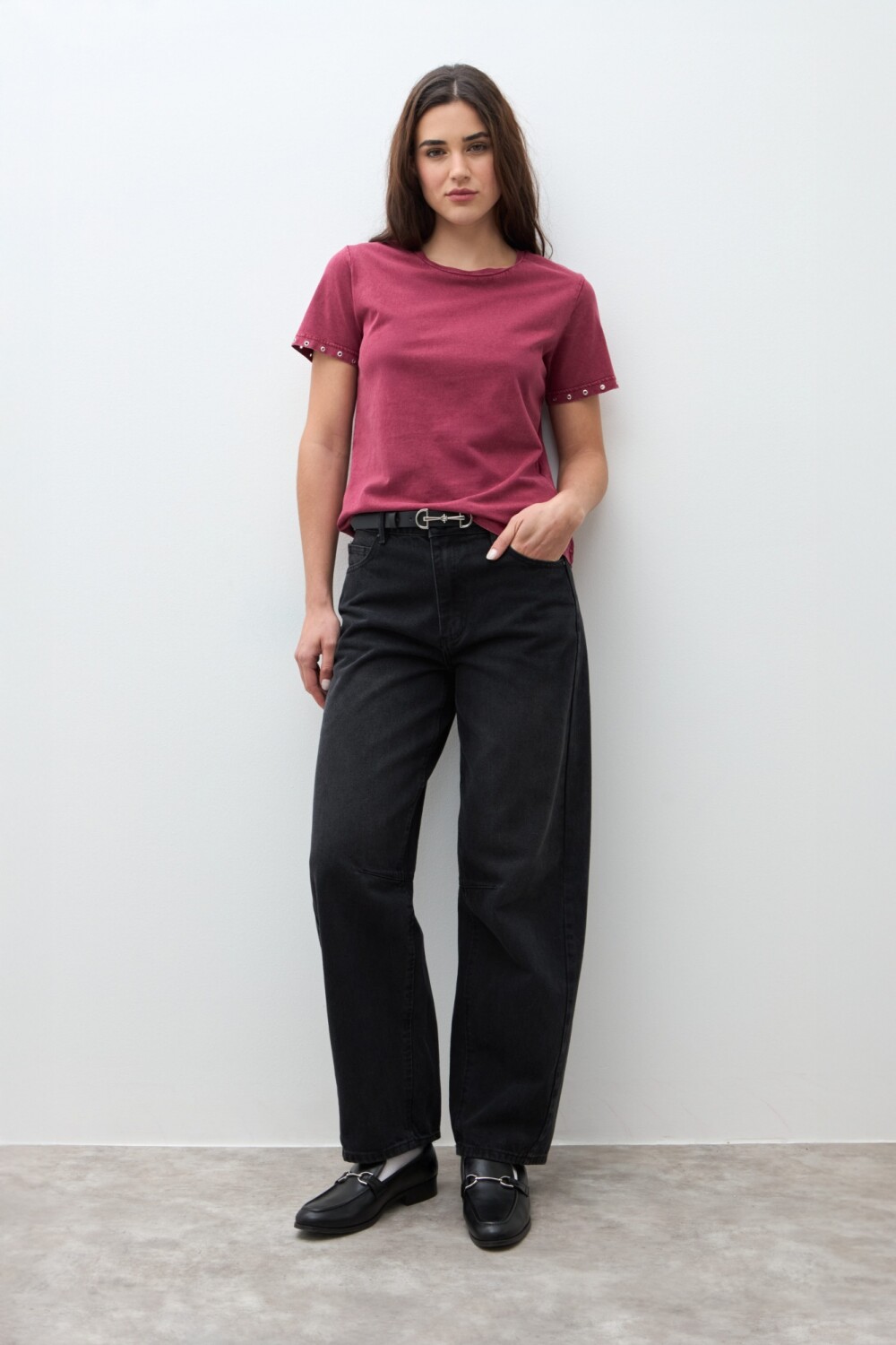 Remera con ojalillos metálicos - bordo