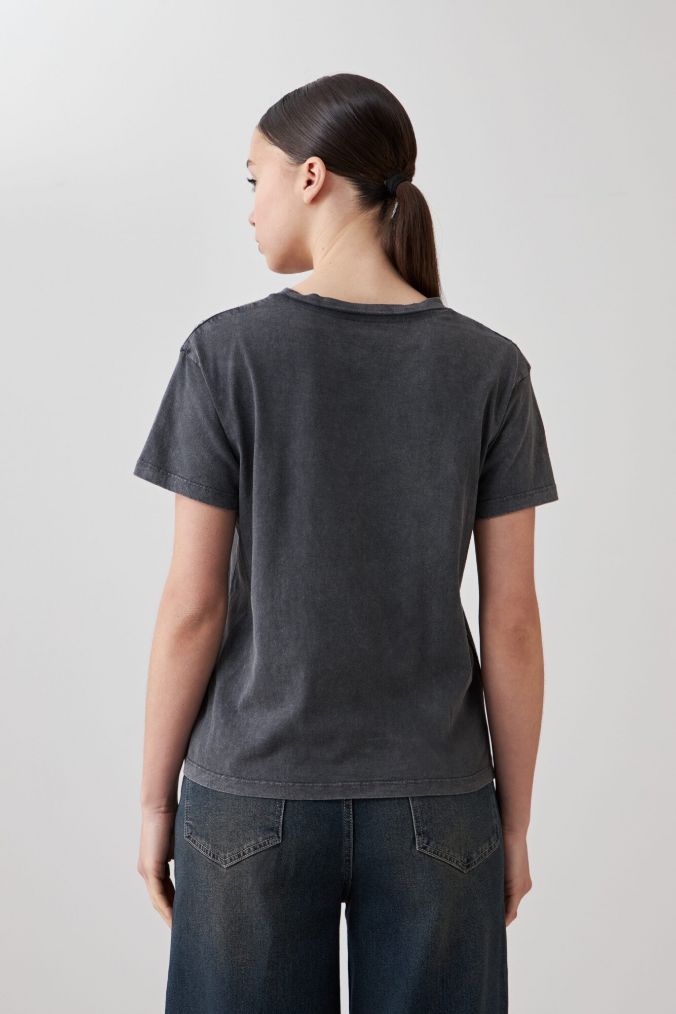 $ 927     Remera de escote a la base y manga corta con detalle de tachas.