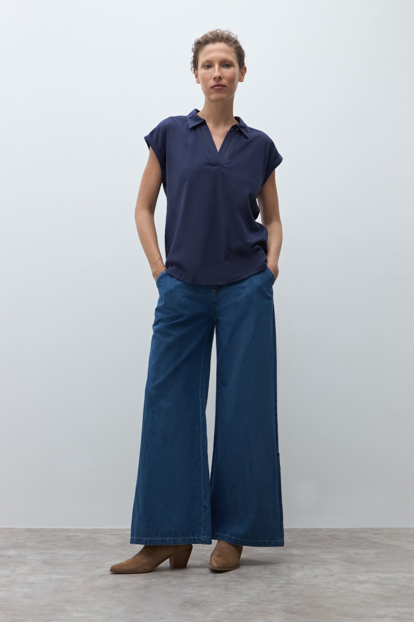 Remera cuello polo - azul marino