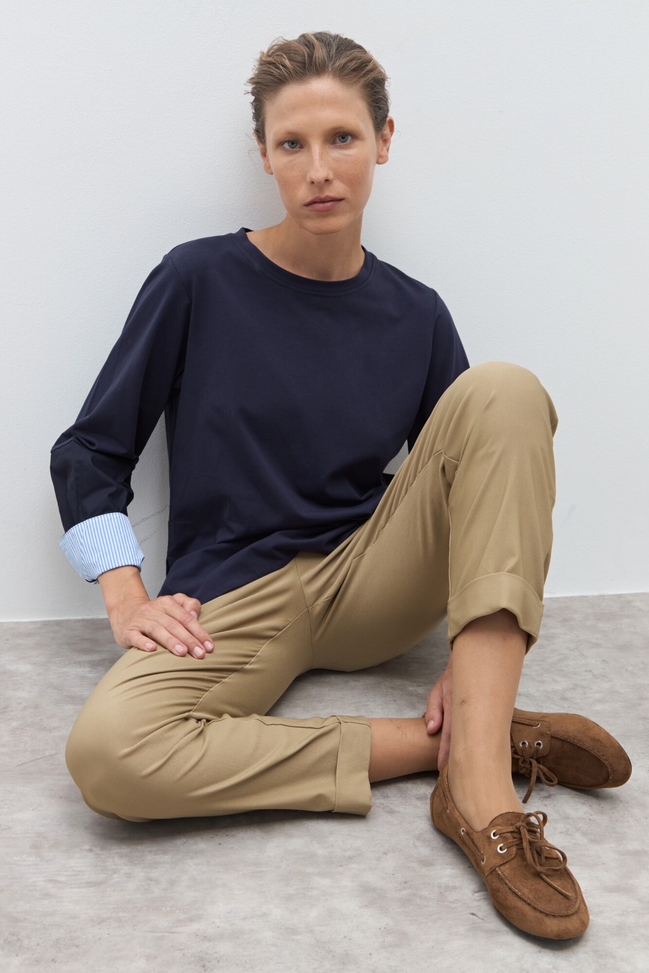 Composición: Cuerpo: 95% Algodón 5% Elastano - Mangas: 100% Algodón poplin