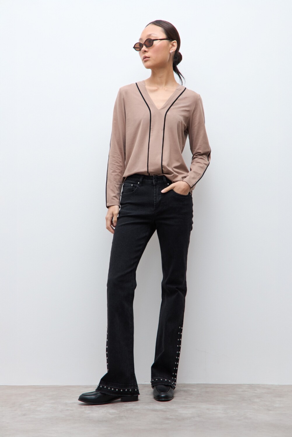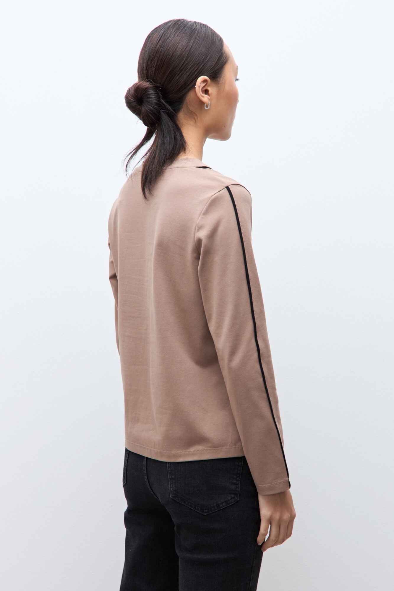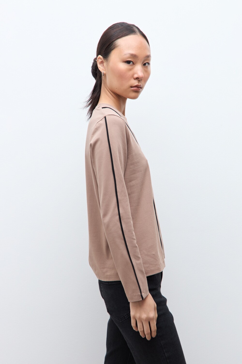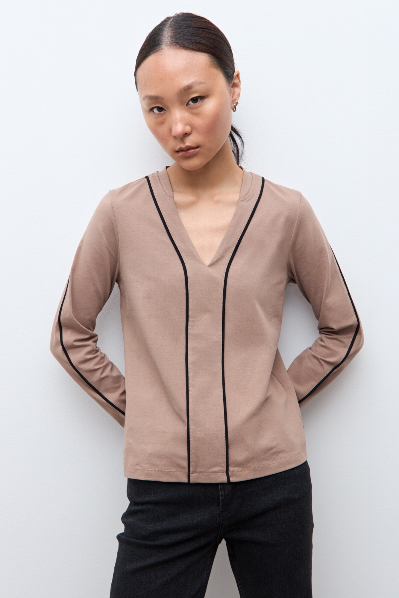 Remera de escote en V. Manga larga. Vivo en contraste.