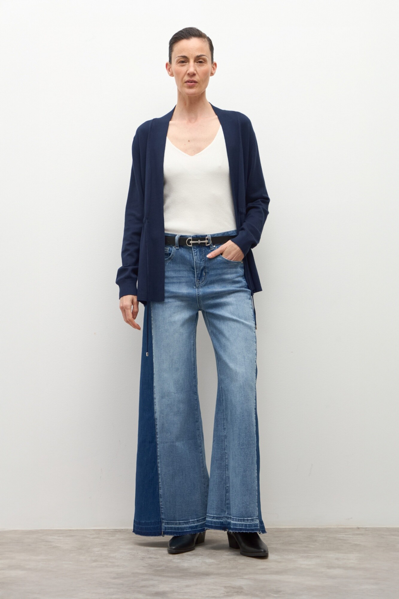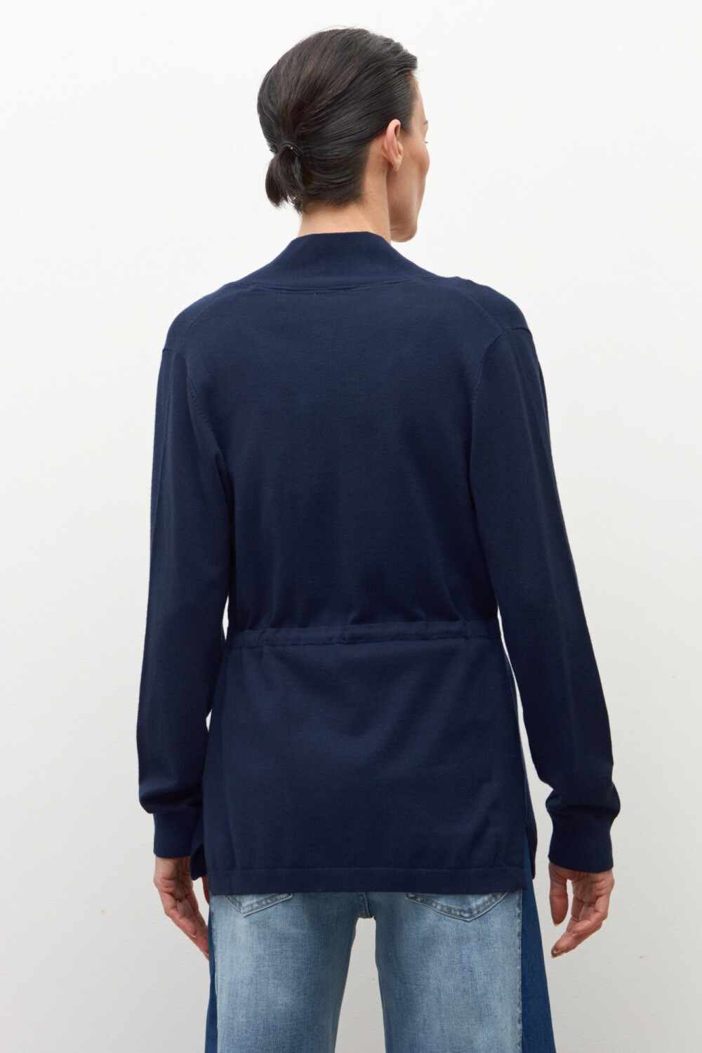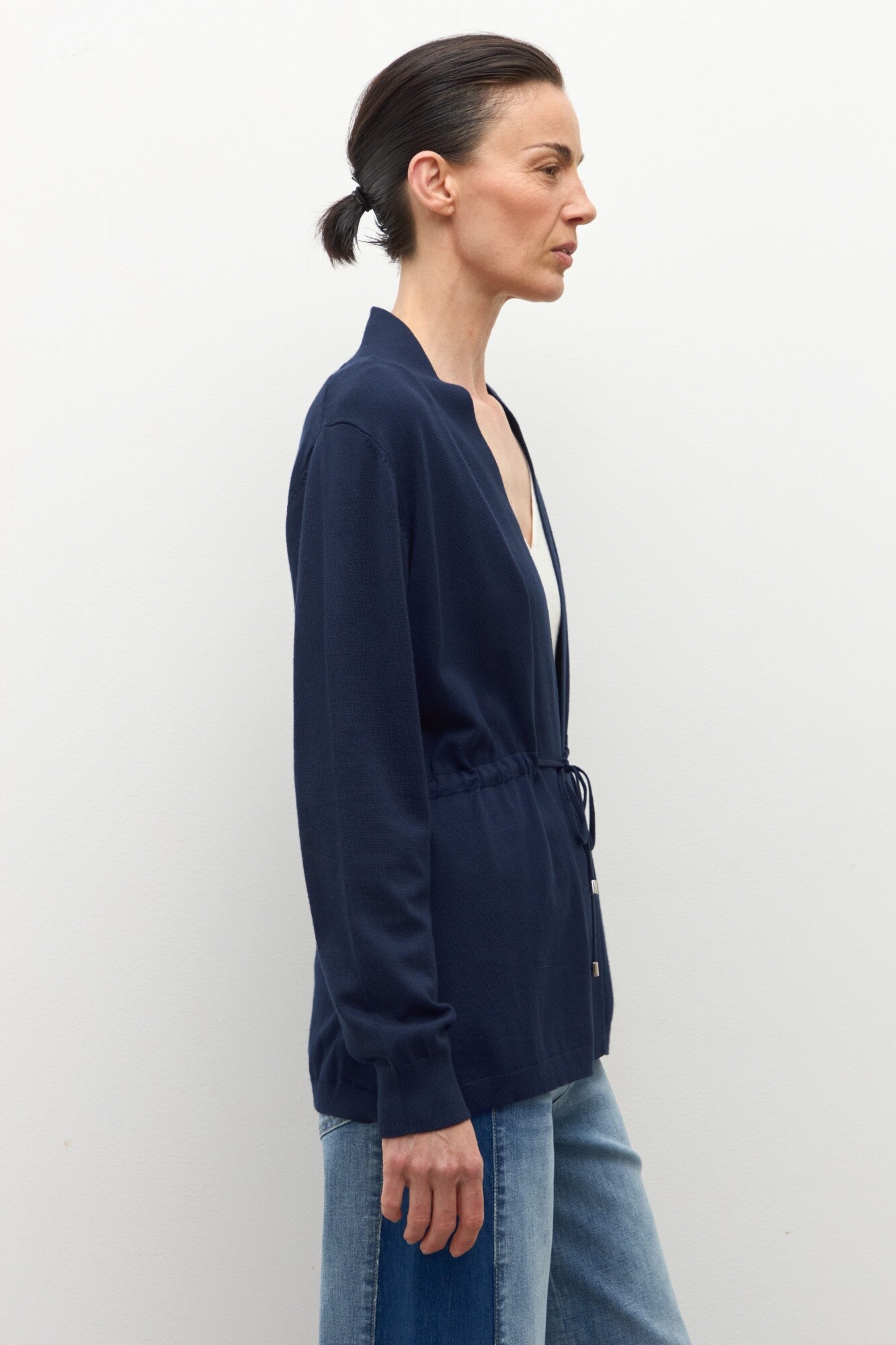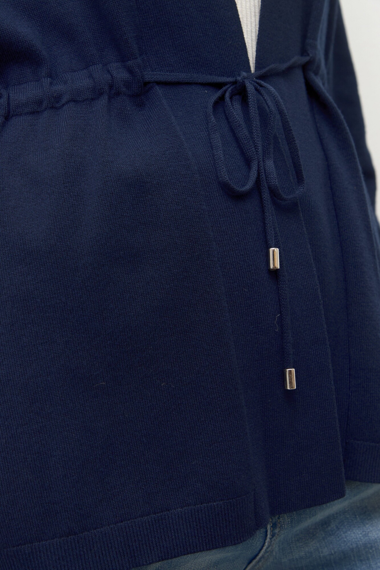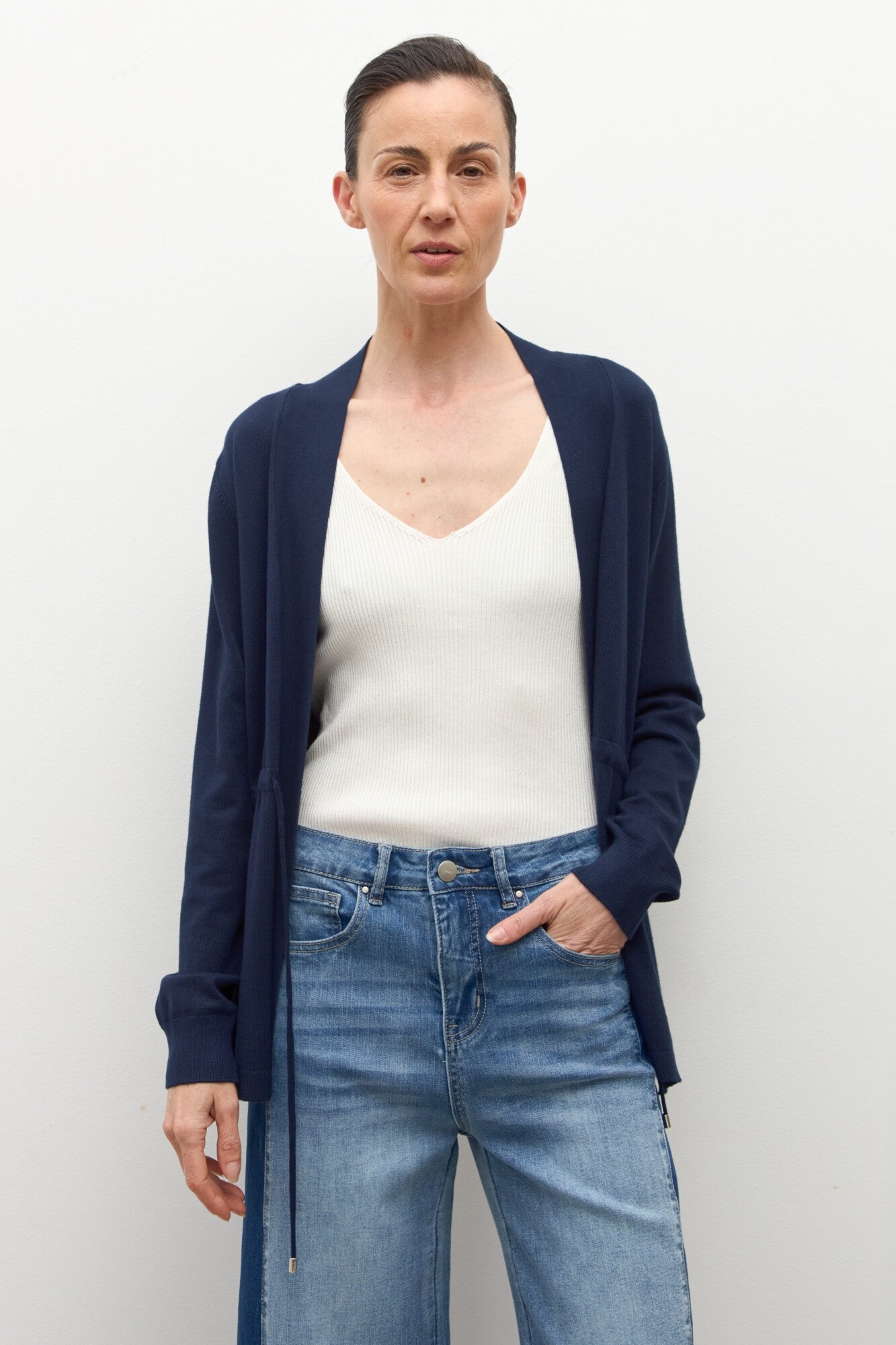 Ruana de escote en V. Lazo de ajuste en cintura.