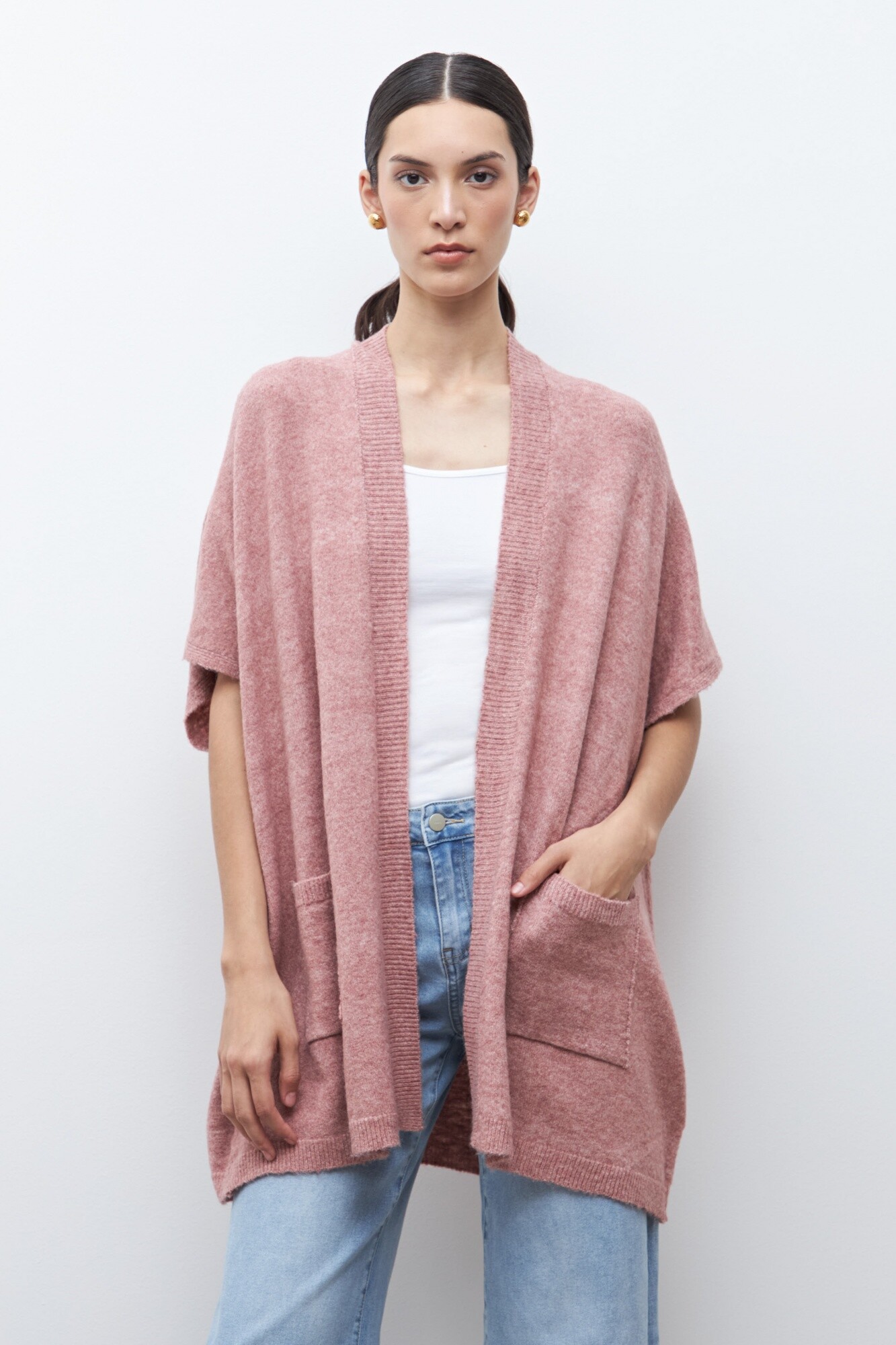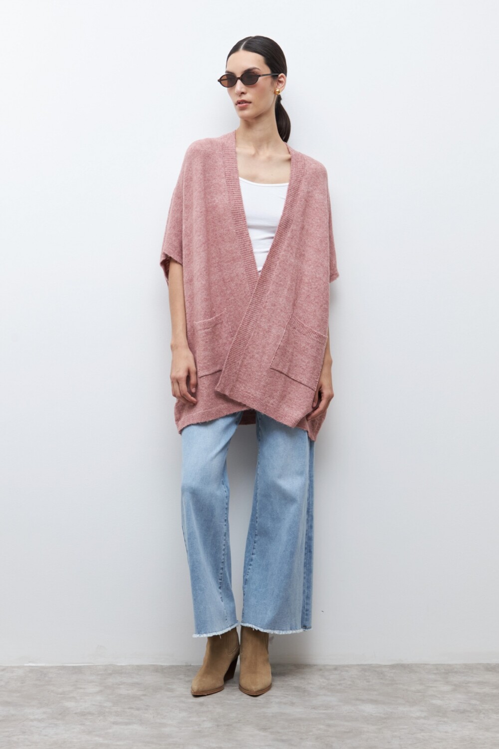 Ruana clásica - rosa melange