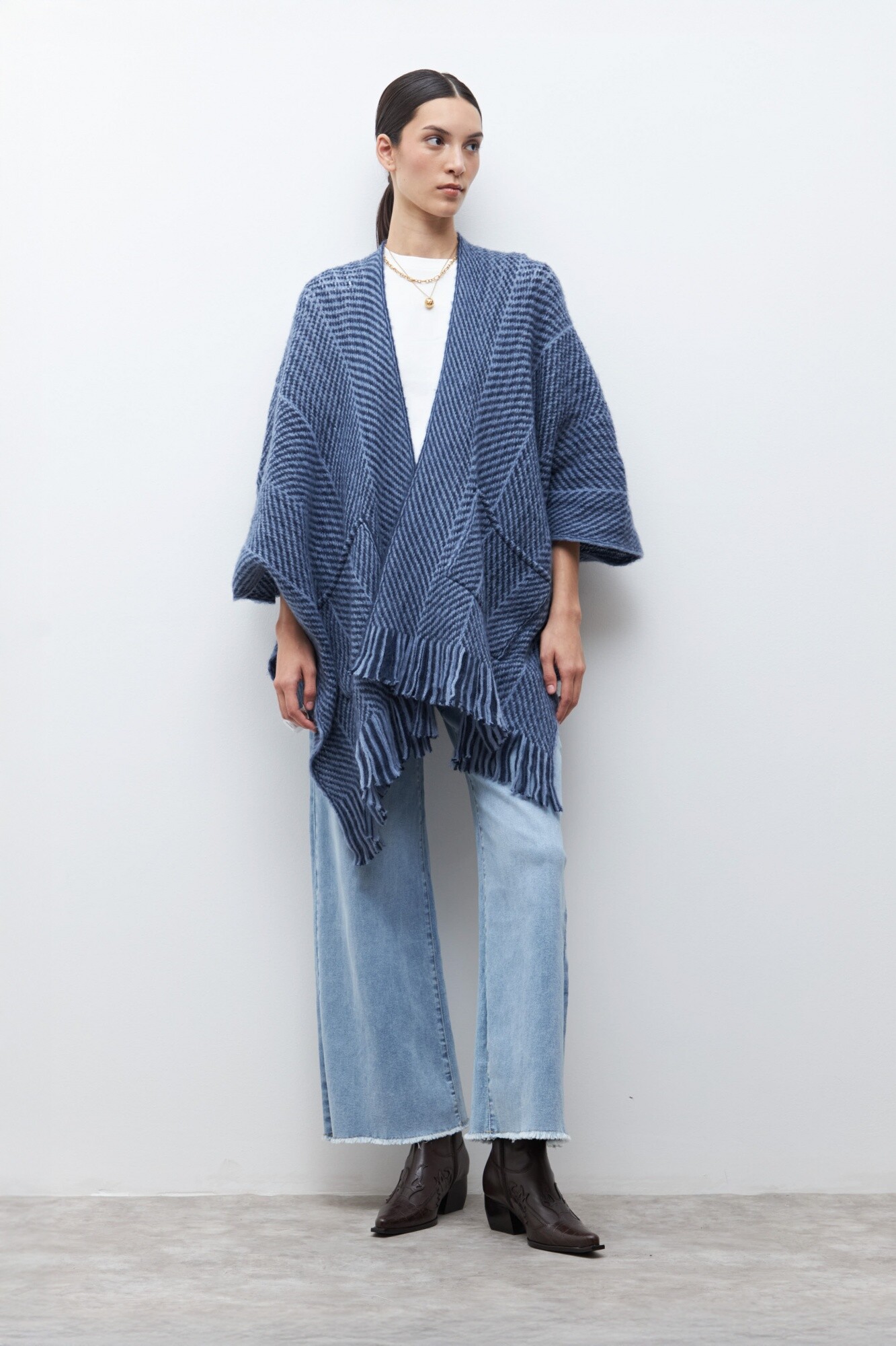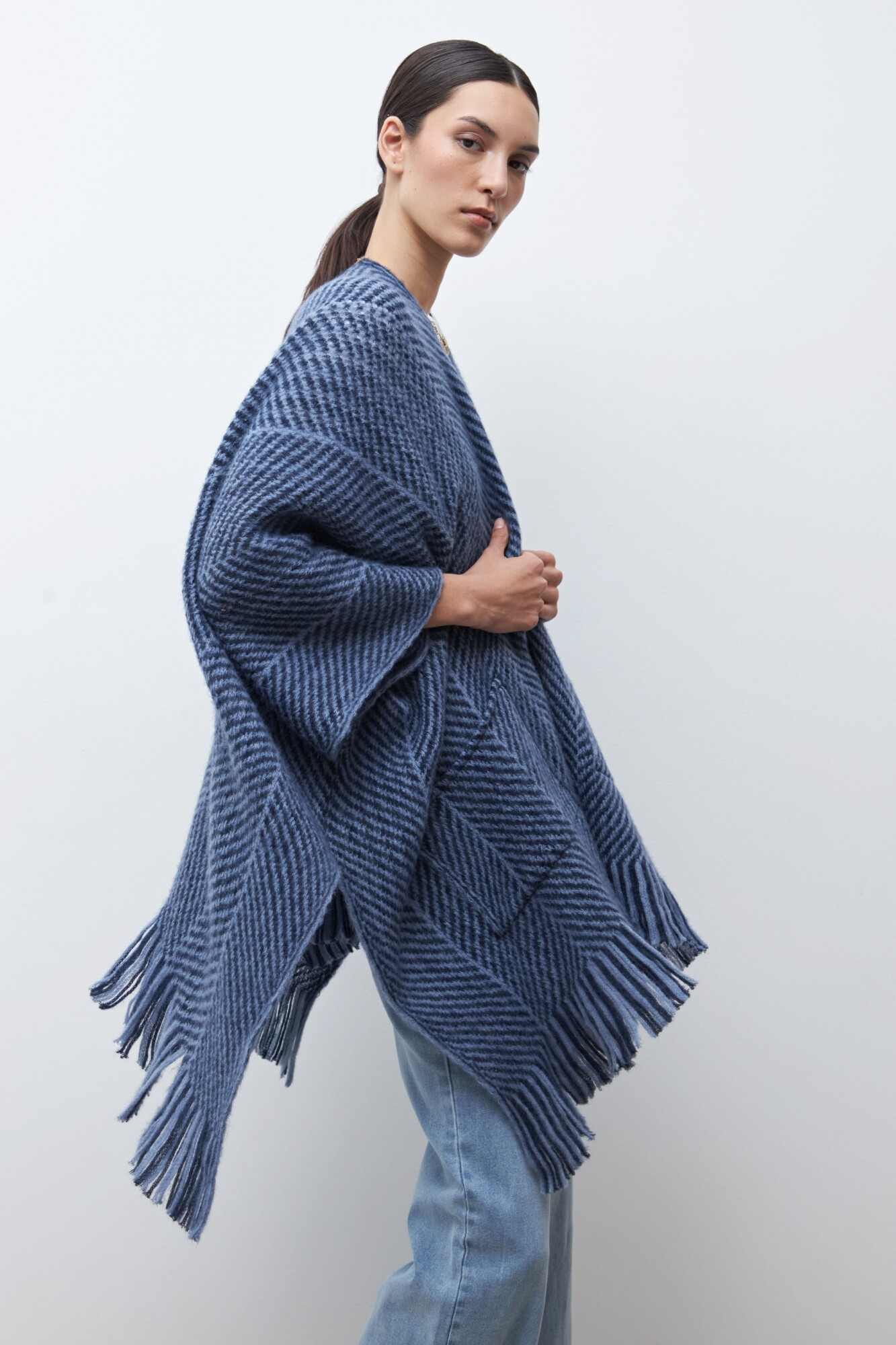 Ruana con bolsillos - azul marino