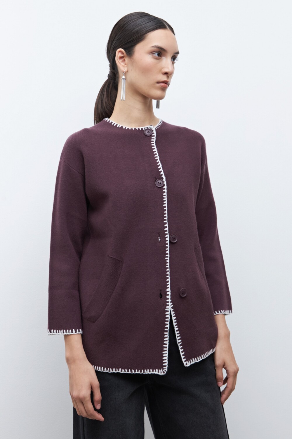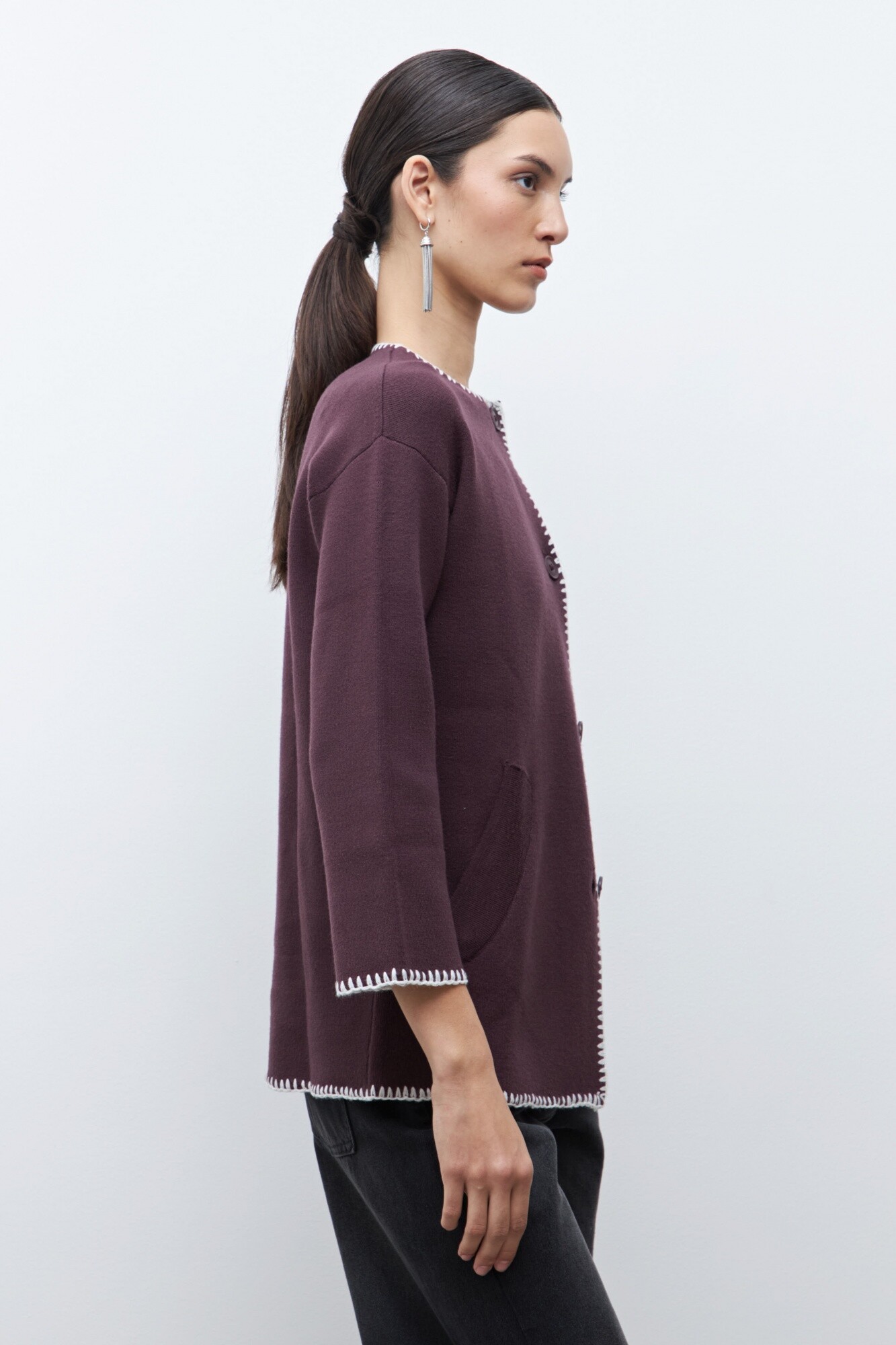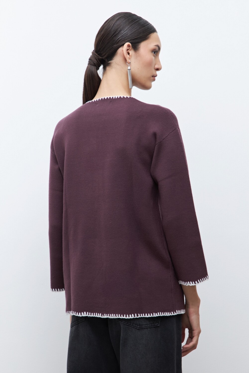 Sacón bordado en contraste - ciruela
