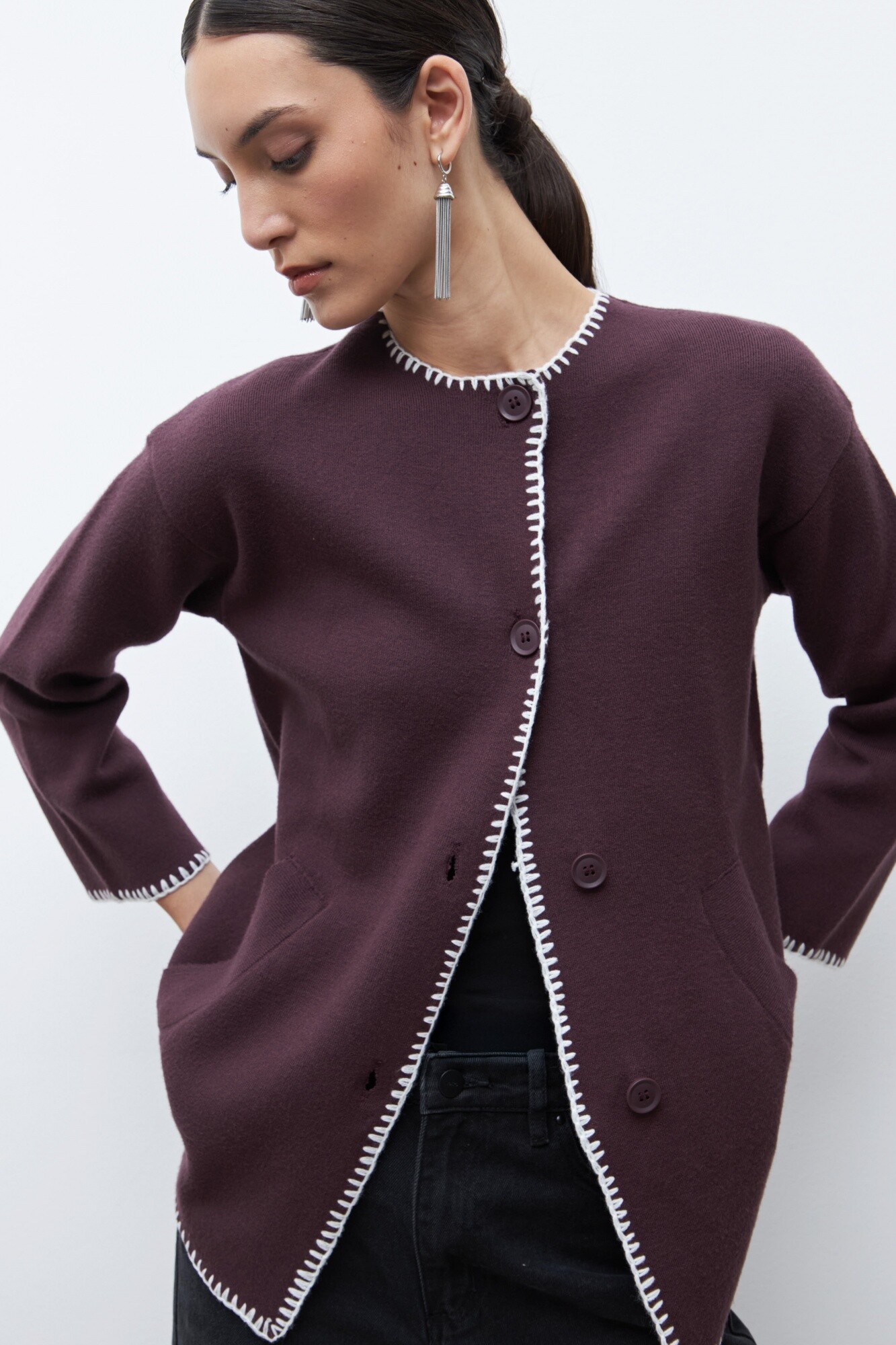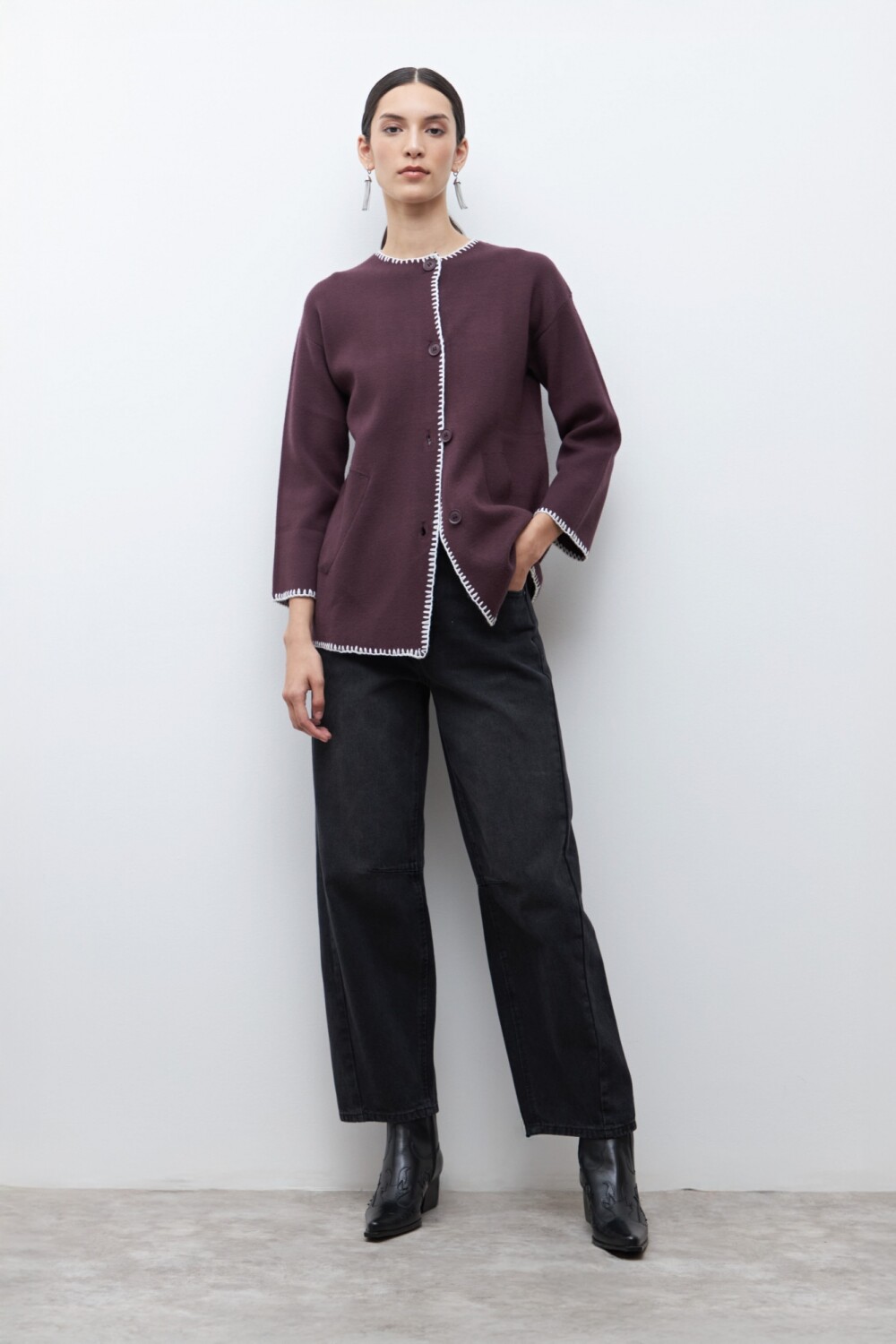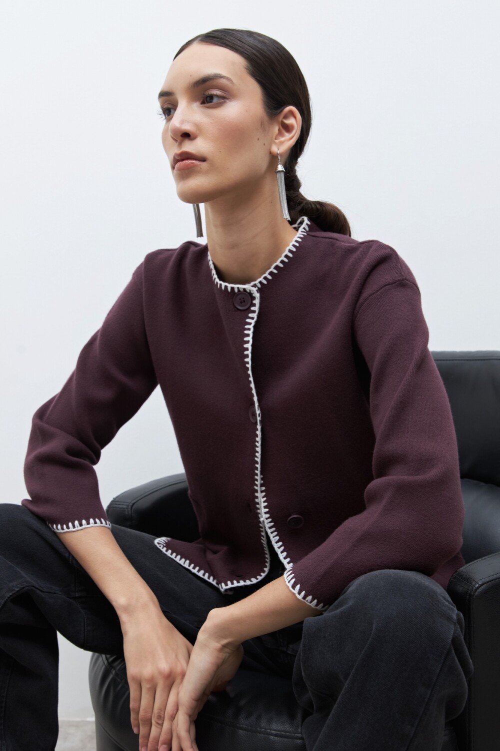 Sacón bordado en contraste - ciruela