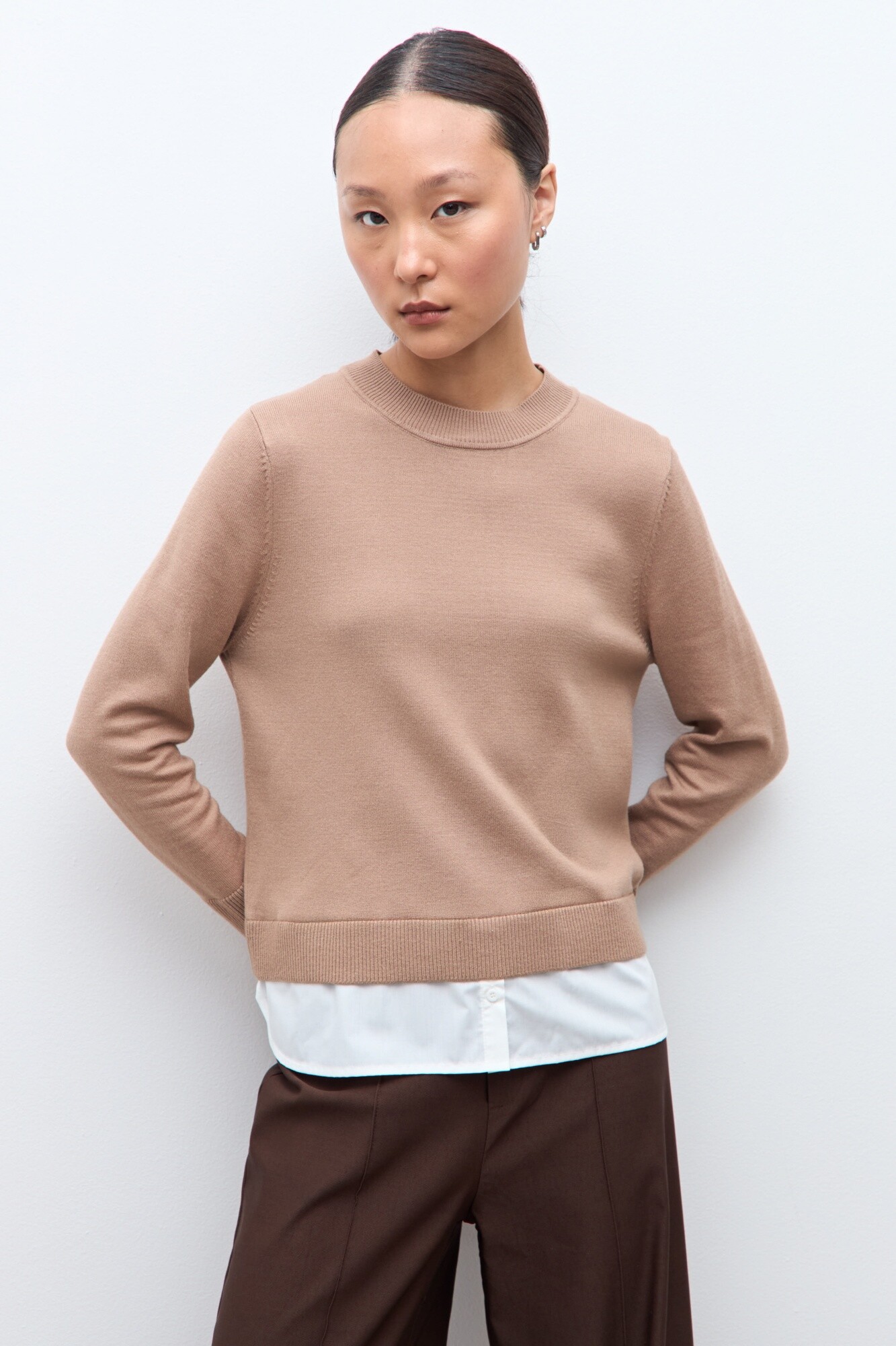 Sweater con camisa - tostado melange