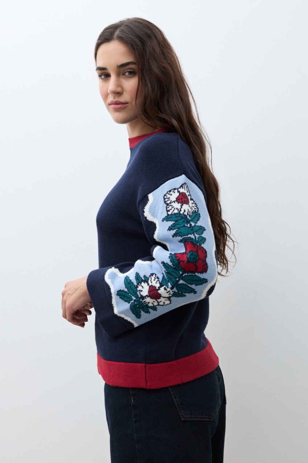 Nuevos Sweater con jacquard floral nativa - azul marino