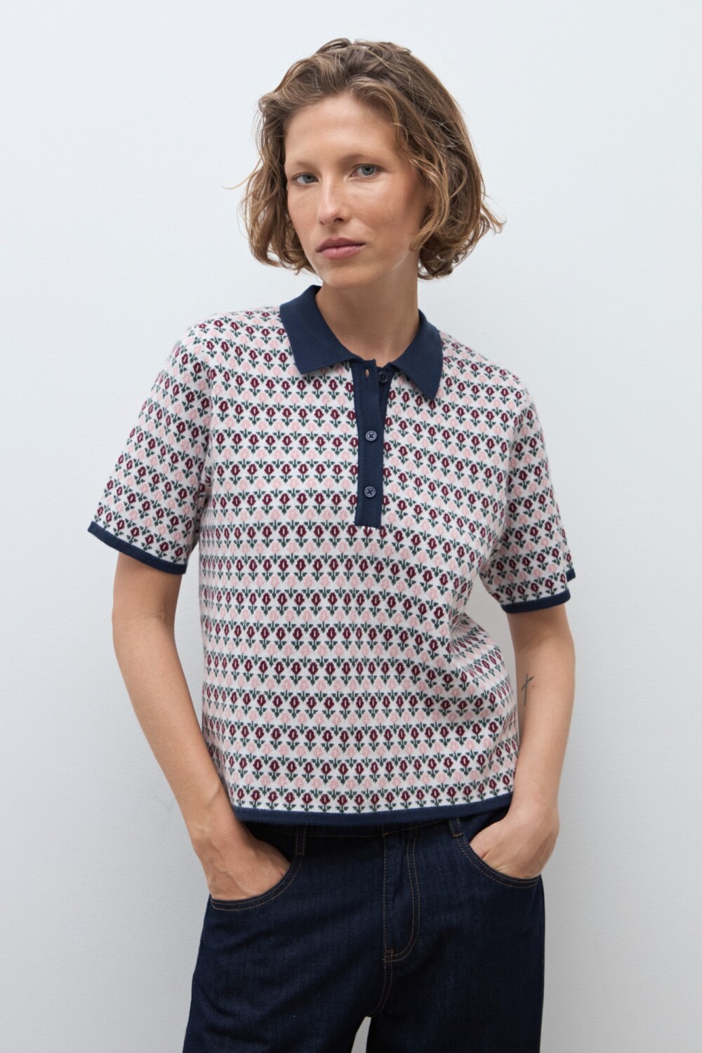 Sweater jacquard cuello polo - crudo