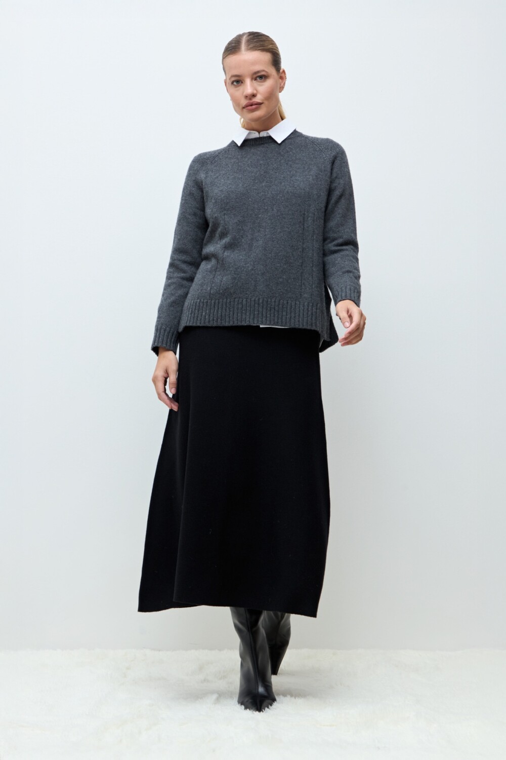 Sweater confeccionado en blend de lana merino y cashmerede. Cuello redondo. Manga larga.