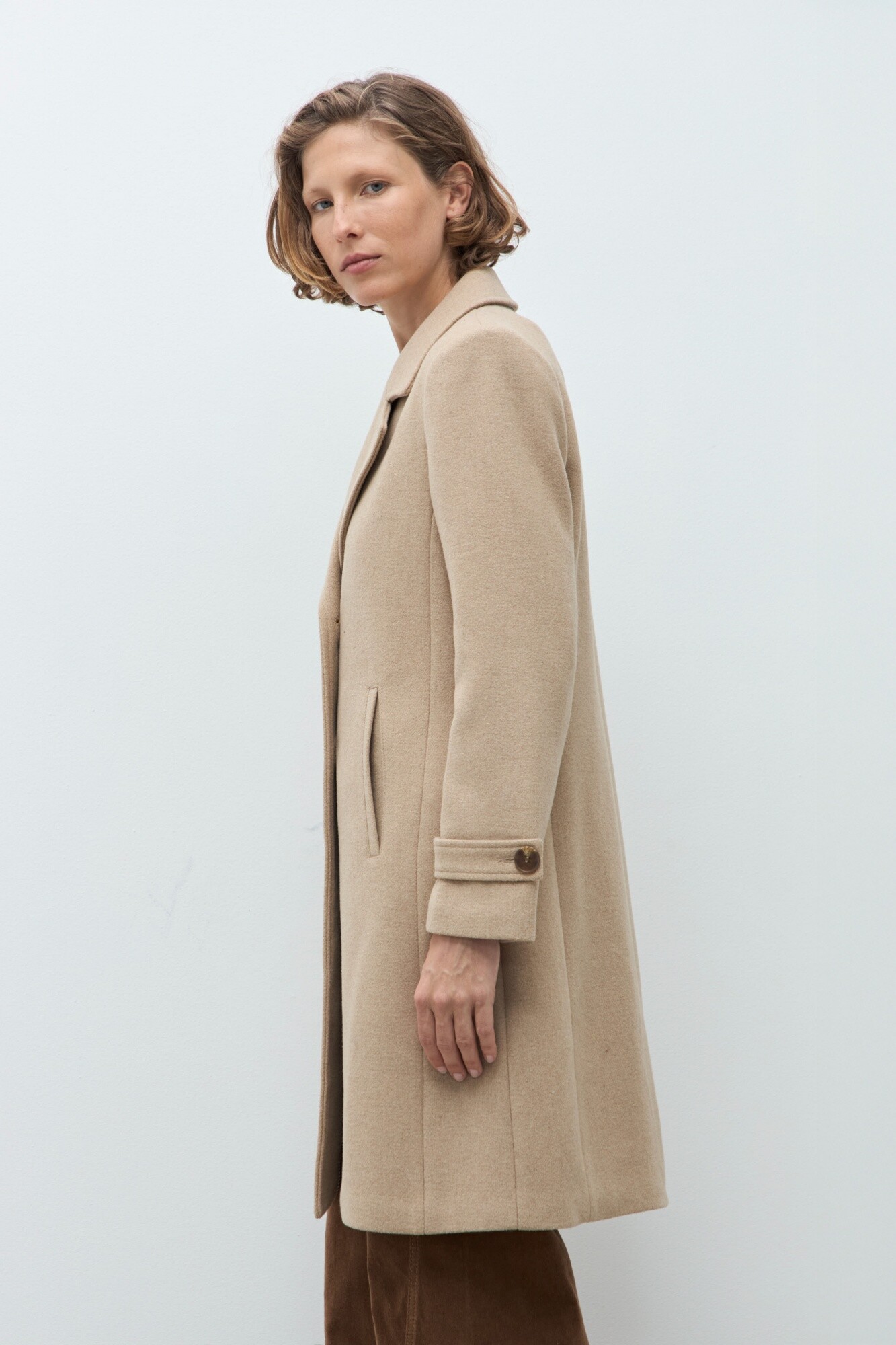 Tapado con cuello solapa. Manga larga. Bolsillos laterales.