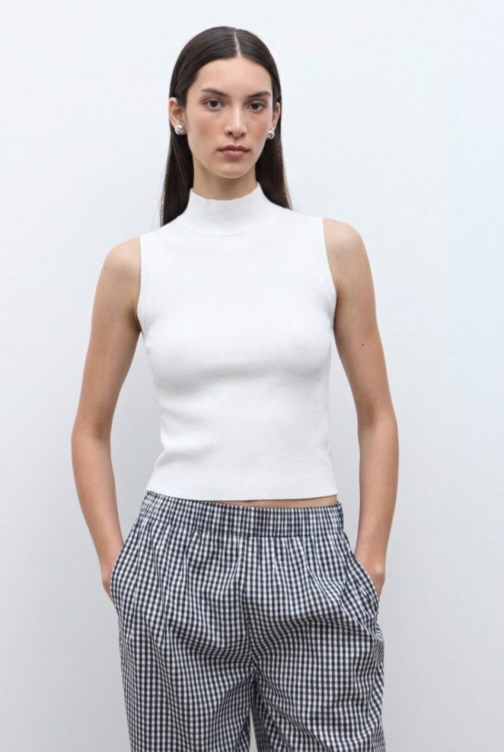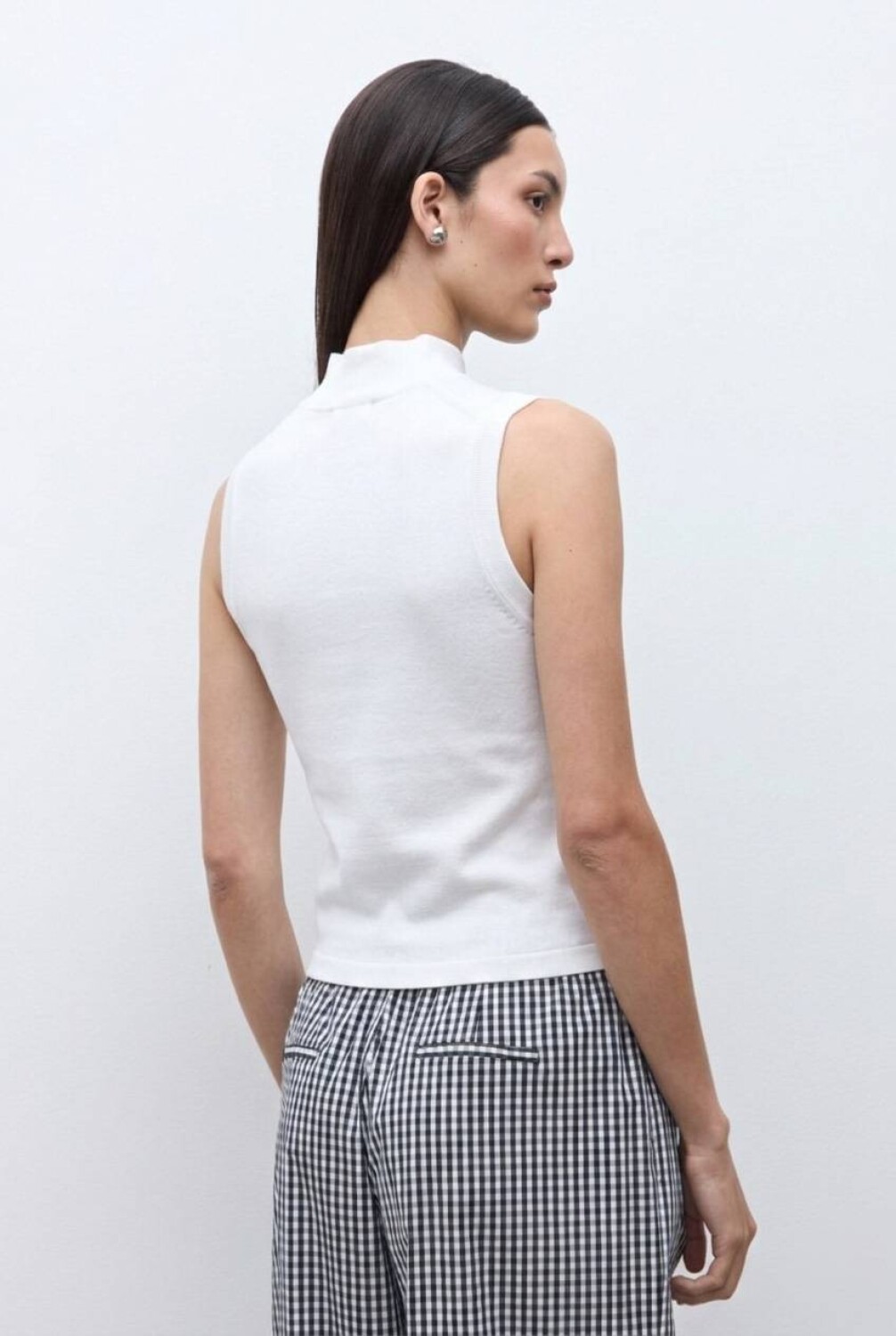 $ 672 * el descuento es aplicado sobre el primer precio de la temporada. Top de cuello subido y manga sisa.