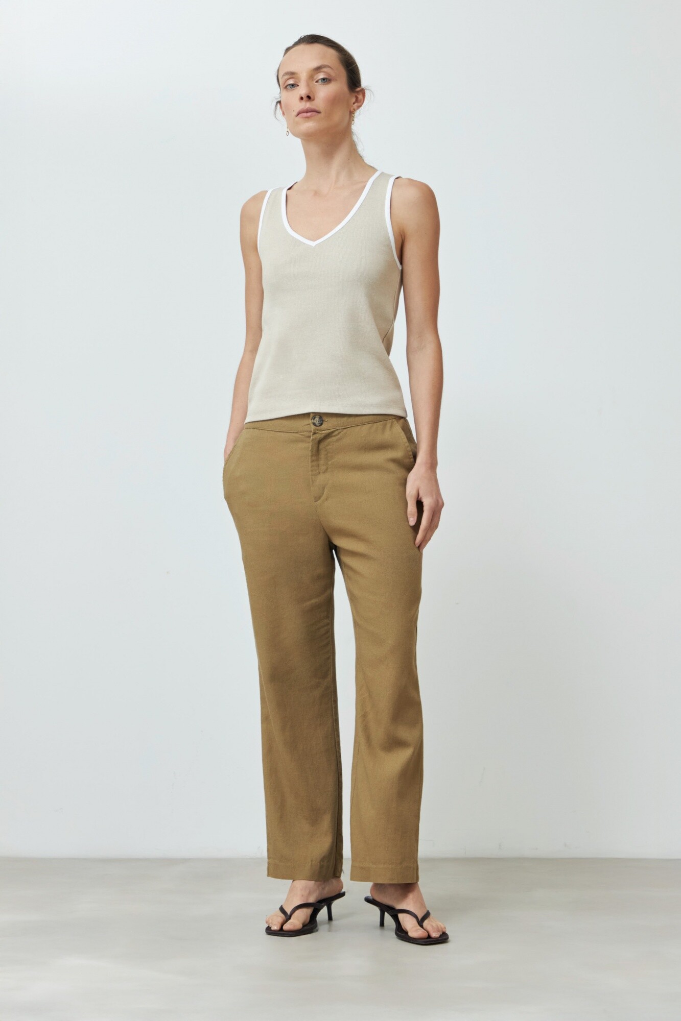 $ 672 * el descuento es aplicado sobre el primer precio de la temporada. Top de escote en V confeccionado en tejido canalé.